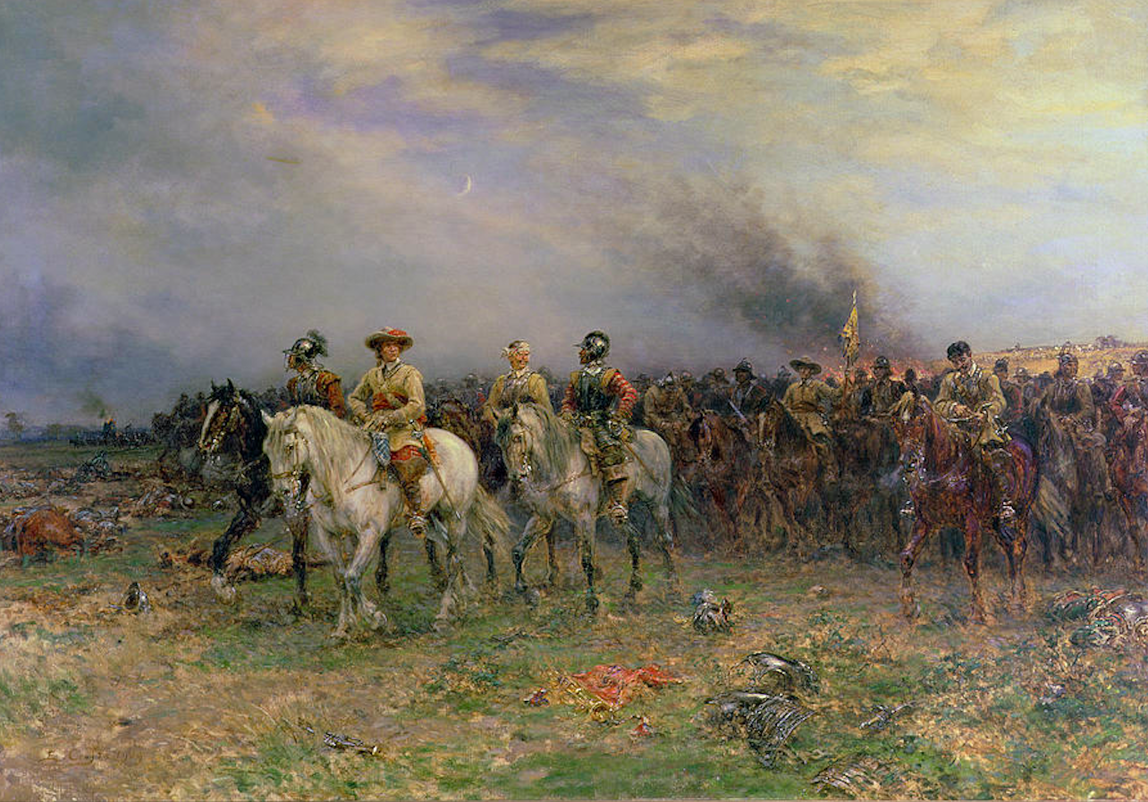A 19th-century painting by Ernest Crofts showing Oliver Cromwell at the Battle of Marston Moor on 2 July 1644 during the English Civil Wars (1642-51). Cromwell and the Parliamentarians were victorious. (Bridgeman Art Library)