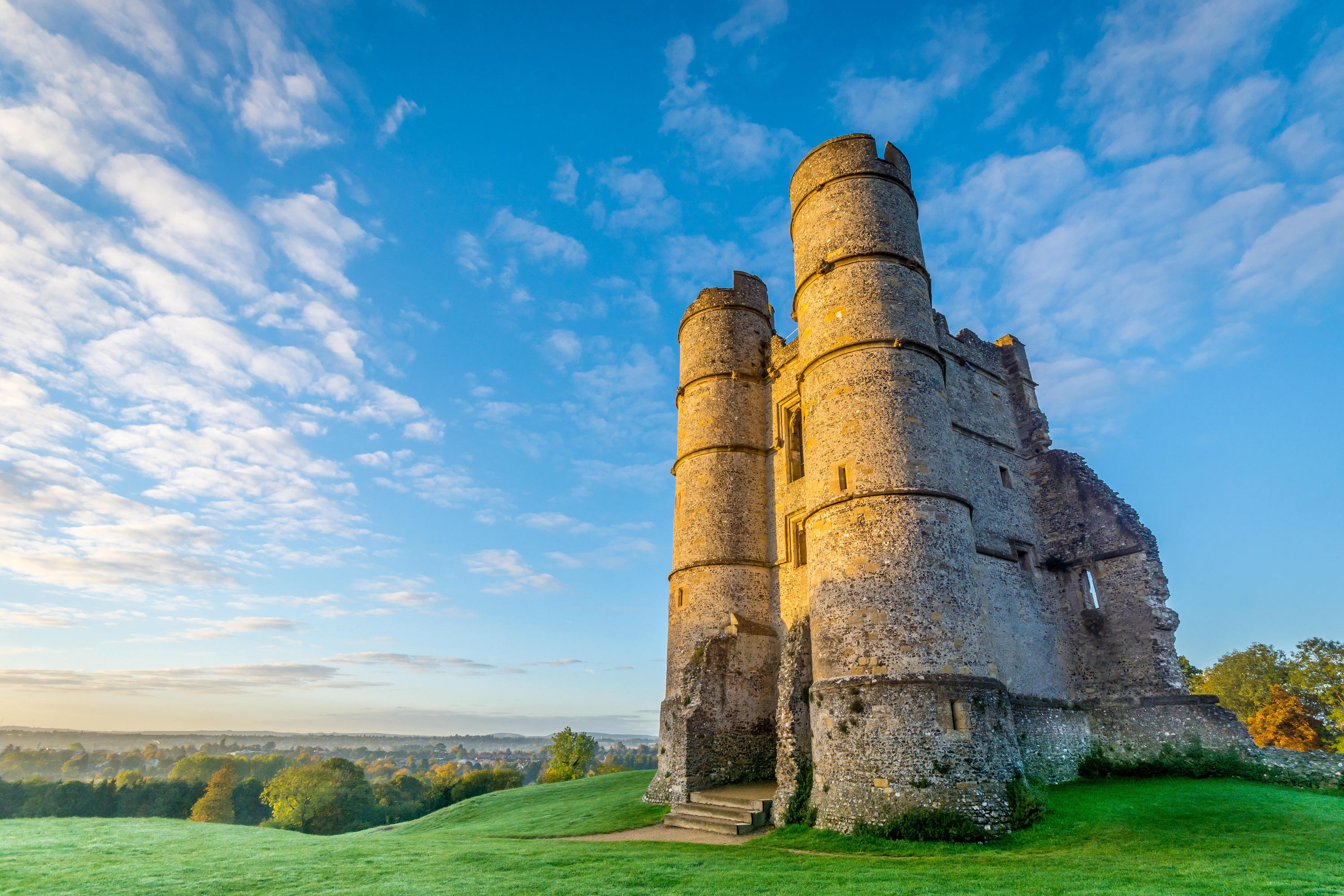 The gatehouse of the now-ruined Donnington Castle, Berkshire, England. It was built in 1386. The castle hosted Royalist artillery during the indecisive Second Battle of Newbury in October 1644 during the English Civil Wars (1642-51).