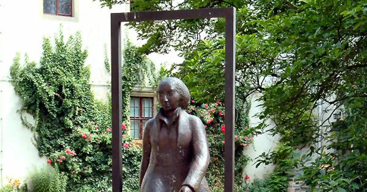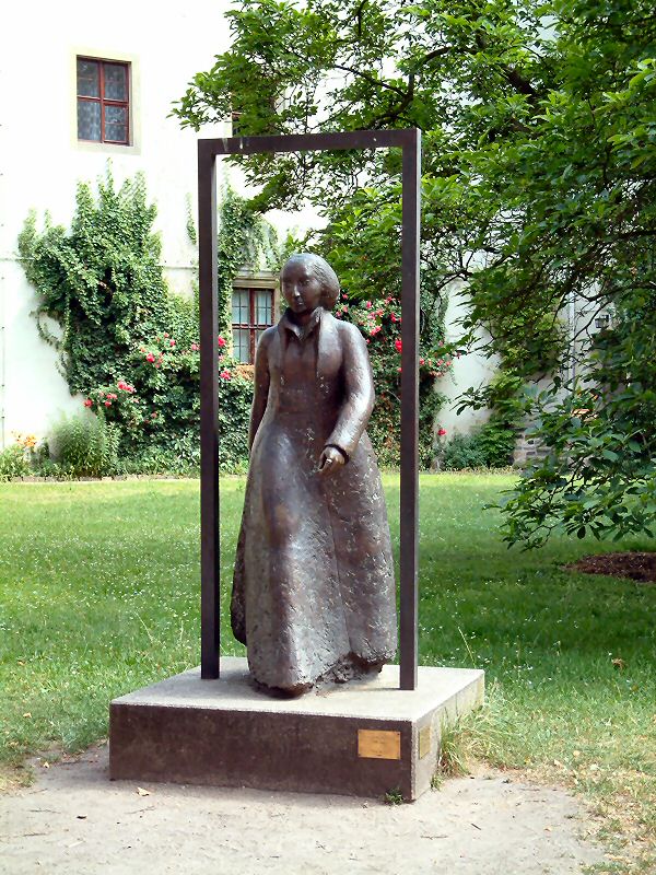 Modern statue of Katharina von Bora (Martin Luther's wife) on the compound of the Lutherhaus, Lutherstadt Wittenberg, Saxony-Anhalt, Germany.