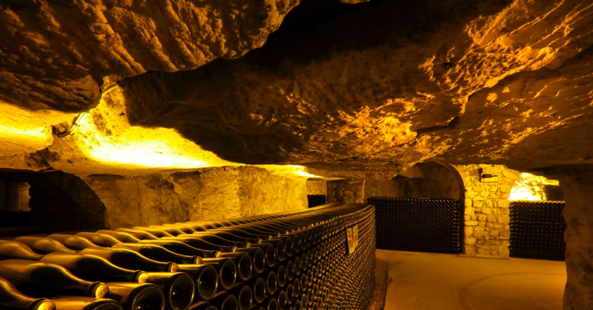 A view of the chalk cellars of Champagne Pannier, France.