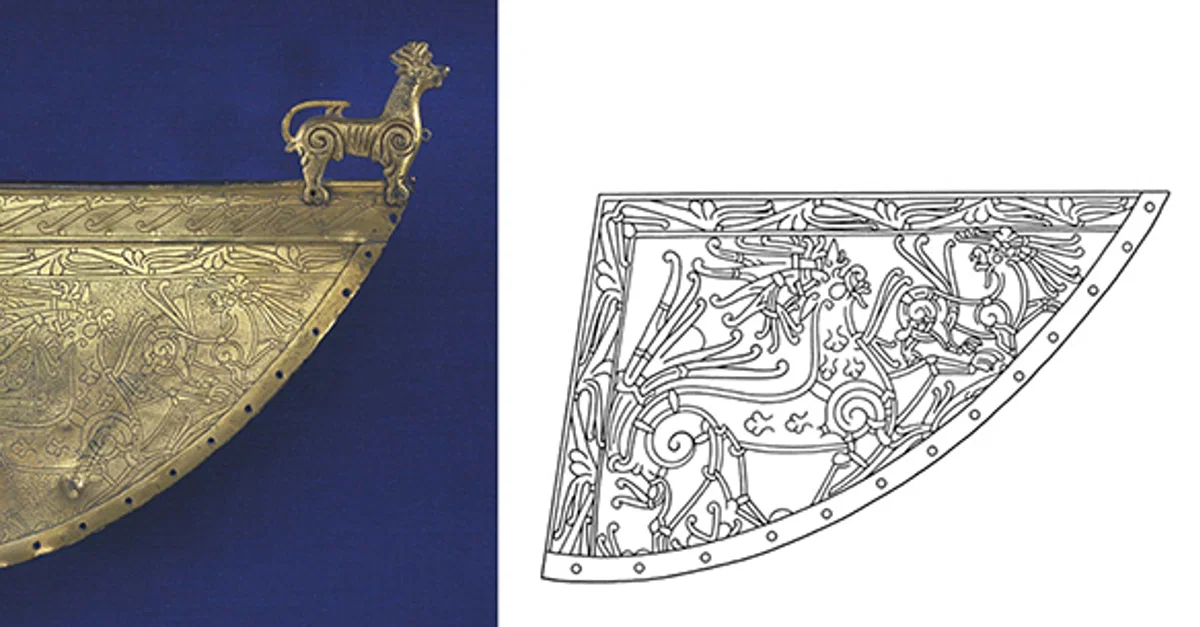 This wind vane (Old Norse veðrviti) glittered at the prow of a longship in the 11th century. Such vanes are very decorative - here a motif of the great beast - and mark of high status in the Viking Age and Early Middle Ages, not only simple indicators of the wind's direction. It was repurposed as a weather vane on the spire of the Heggen church, Norway.