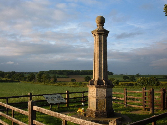 A monument commemorating the Battle of Naseby (14 June 1645) in Northamptonshire during the English Civil Wars (1642-51). The battle was won by the Parliamentarians.