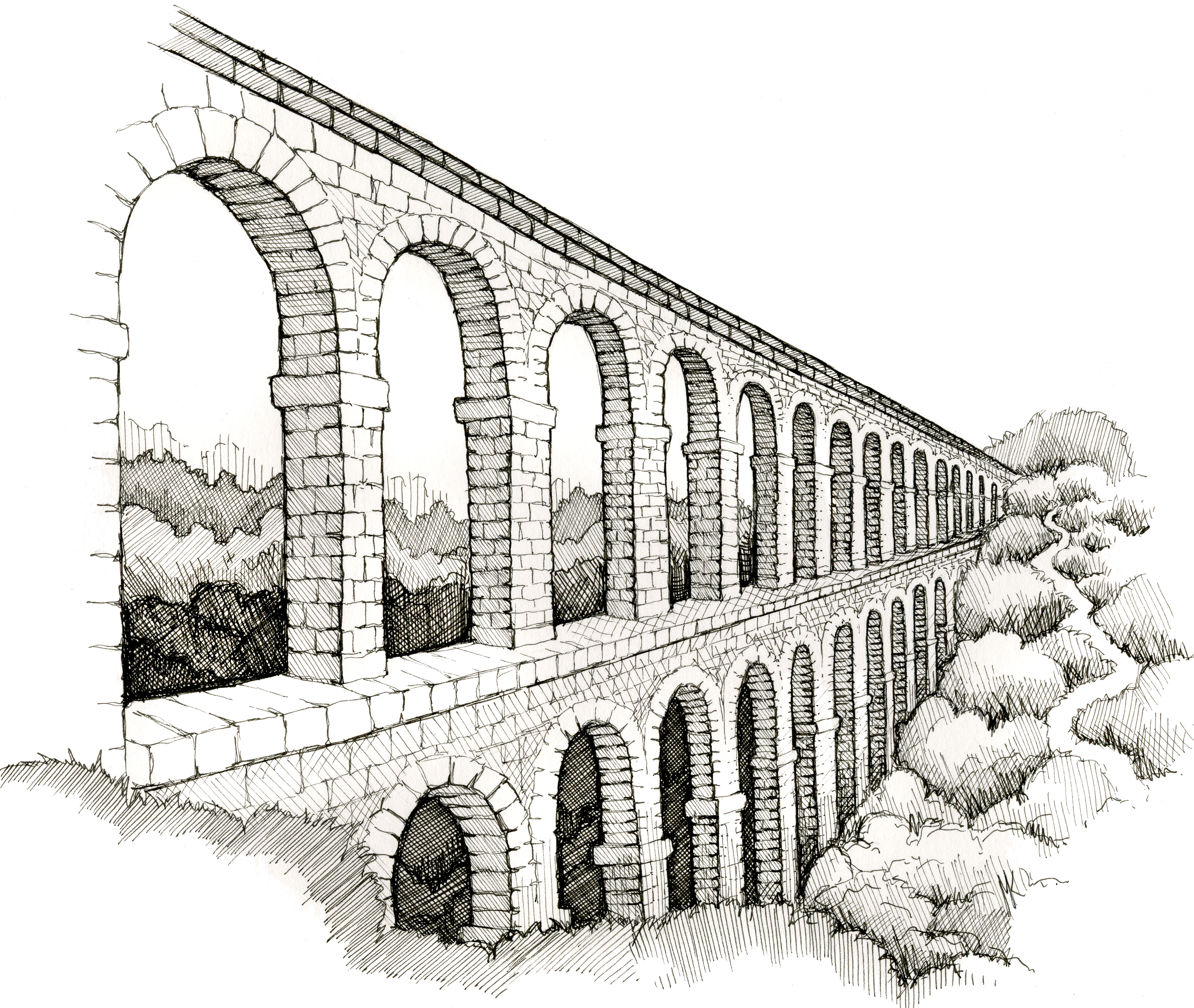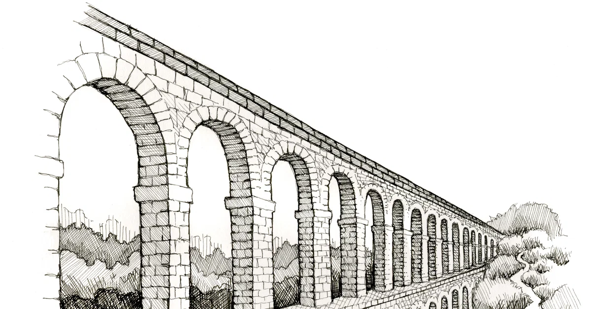 An illustration by Maia Kobabe showing an aqueduct.