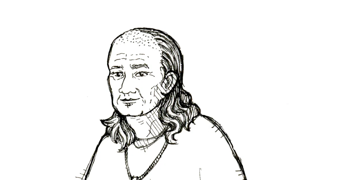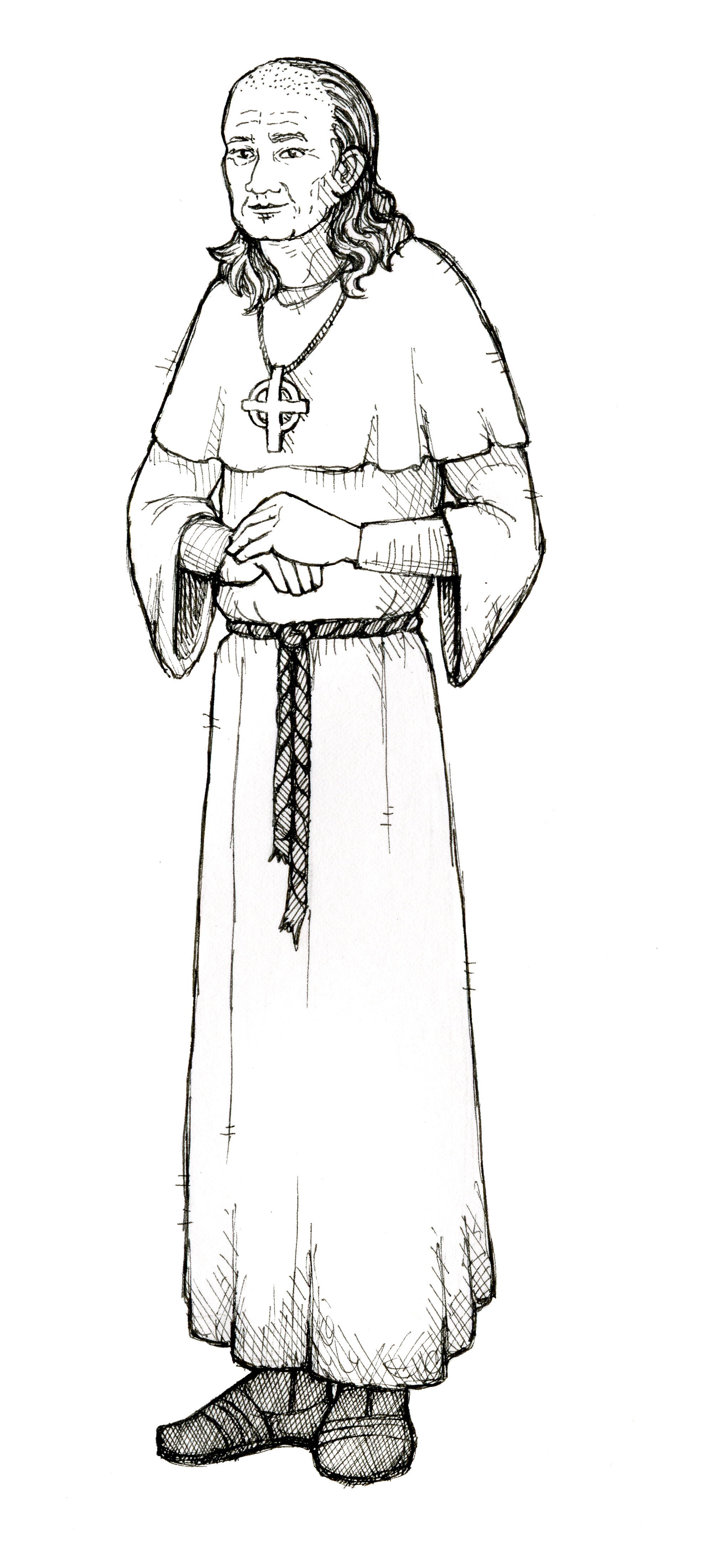 An illustration by Maia Kobabe showing an Irish missionary of the early Middle Ages.