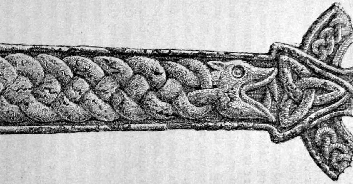 A photo showing the son of Odin avenging his father's death. The scene is depicted on the Gosforth Cross, located in the churchyard of St. Mary's, Gosforth, Cumbria. The cross depicts several scenes that may be related to Norse mythology.