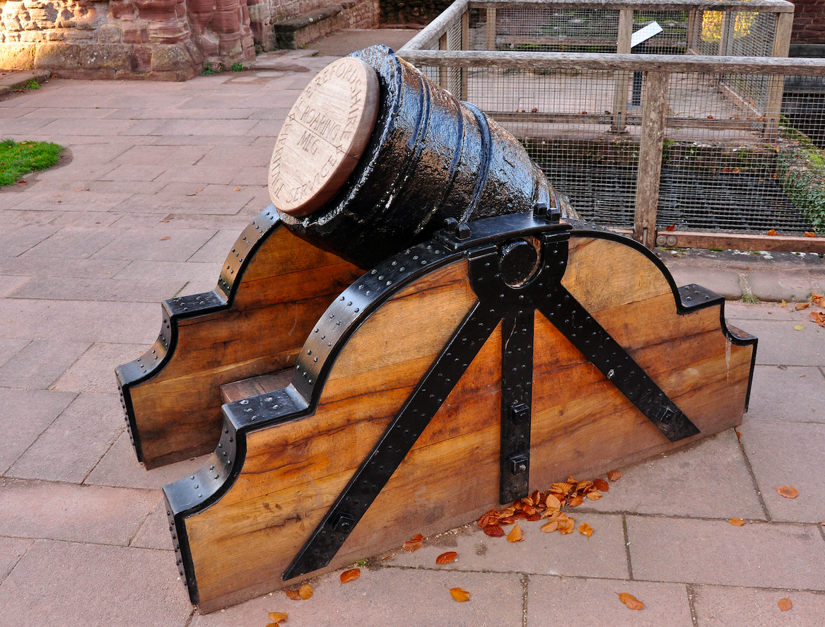 The 17th-century mortar "Roaring Meg". On display at Goodrich Castle, Herefordshire, England.
