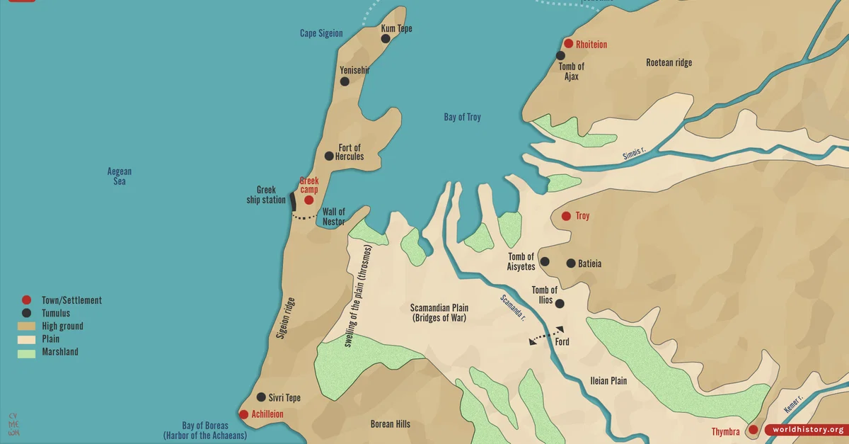 Netchev, S. (2022, February 11). Map of the Trojan Plain c. 1200 BCE. World History Encyclopedia. https://www.worldhistory.org/image/15243/map-of-the-trojan-plain-c-1200-bce/