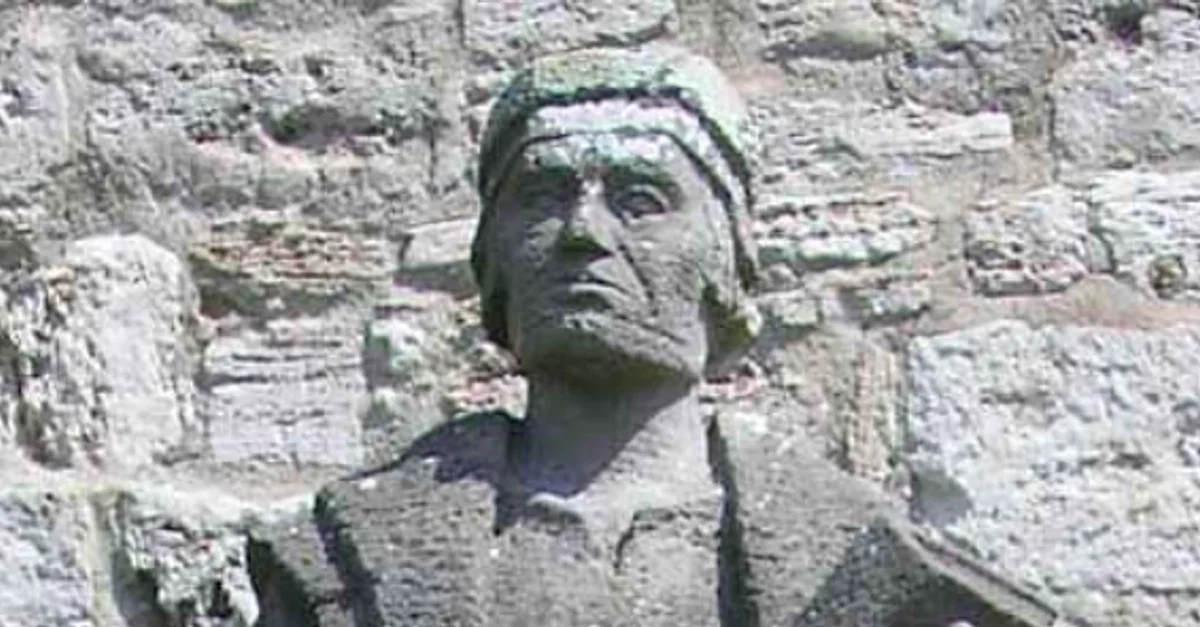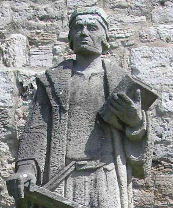 A modern statue of Thomas Müntzer (l. c. 1489-1525), the German theologian and apocalyptic preacher who became one of the leaders of the German Peasants' War (1524-1525). Frauentor in Mühlhausen, Thüringen.