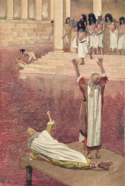 Water is Changed into Blood, the first of the ten plagues of Egypt, watercolor by James Tissot, before 1903.