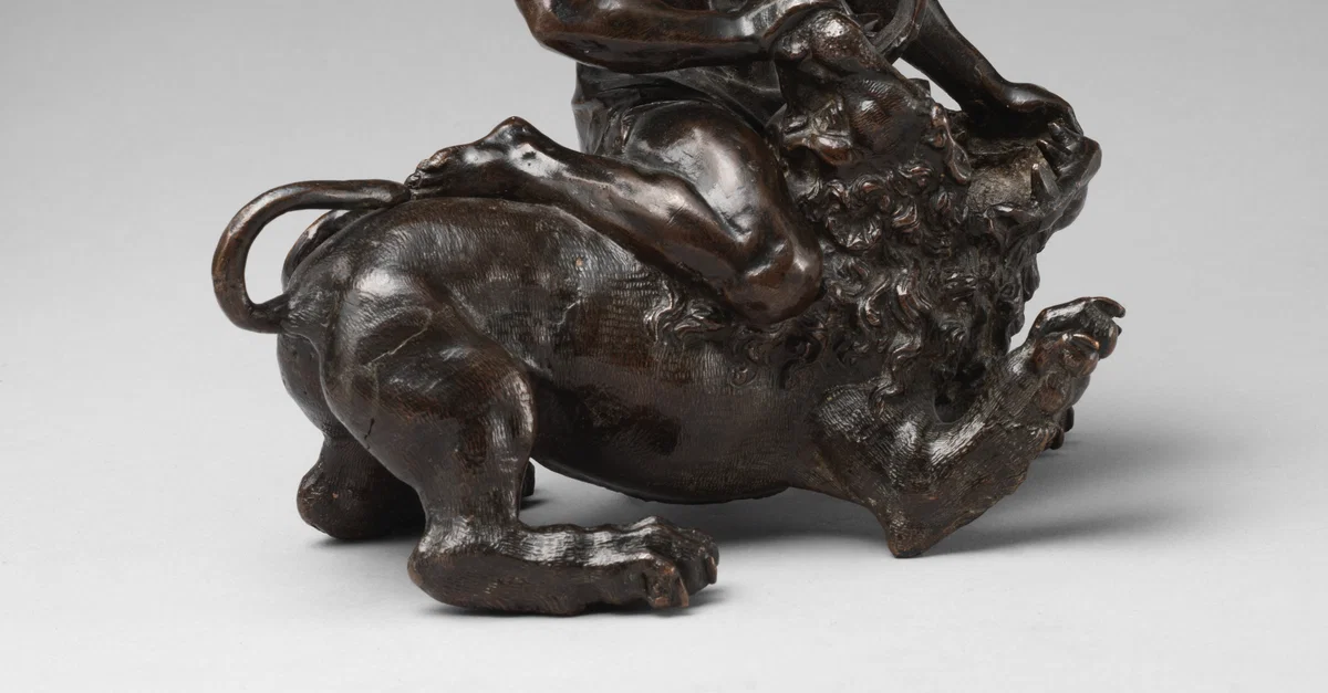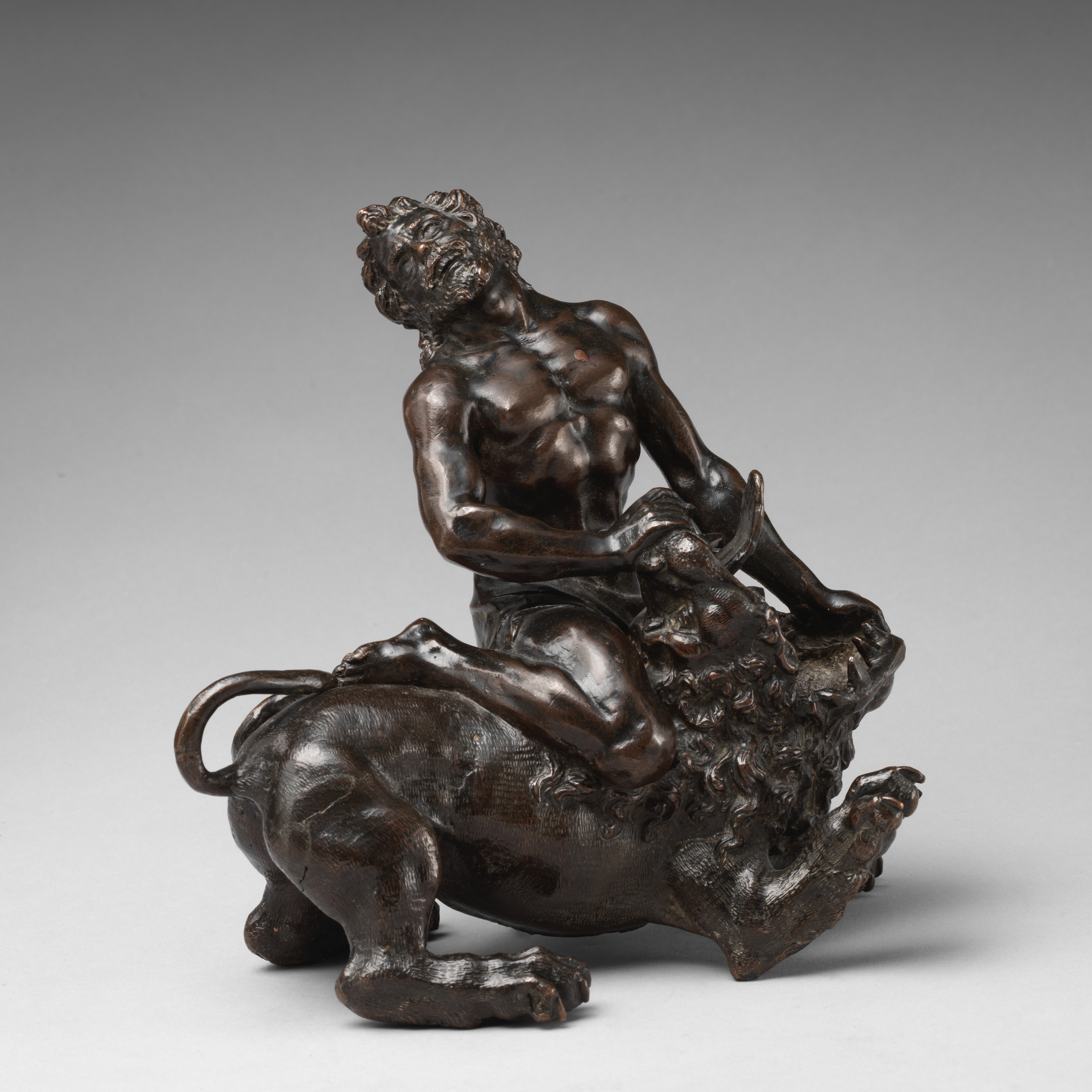 A bronze statue portraying an ancient Israelite judge Samson fighting with the Lion.