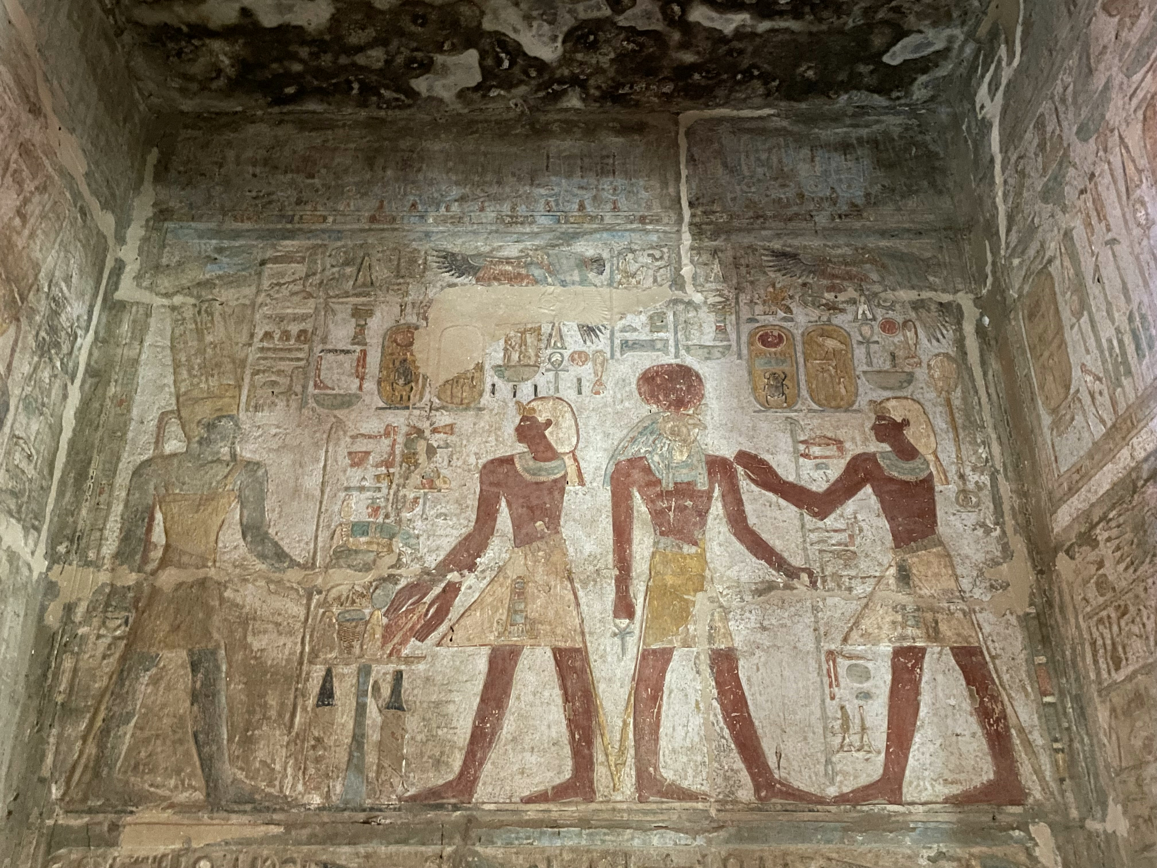 Relief in the Temple of Amada depicting Amenhotep II (1427-1401 BCE) making an offering to Amun-Ra while his father on the right Thutmose III (r. 1458-1425 BCE) makes an offering to Ra-Harachte. The Temple of Amada is the oldest temple ever found in Nubia. It is located at the site of New Amada, an archaeological complex containing three ancient Nubian monuments spared from the rising waters of Lake Nasser.