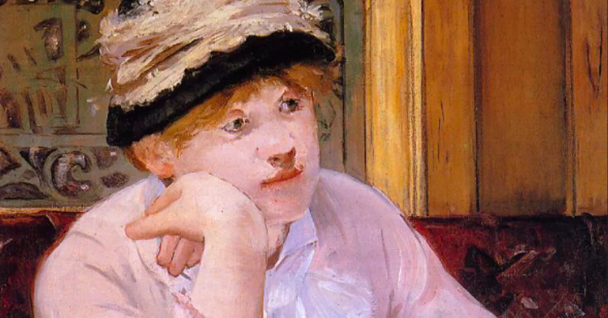 An 1878-9 oil on canvas painting, La Prune (The Plum), by Edouard Manet (1832-83), the French modernist painter. Named after the dessert the girl is eating, this work shows a working woman, perhaps a shop assistant, lost in thought in a café. (National Gallery of Art, Washington, U.S.A.)