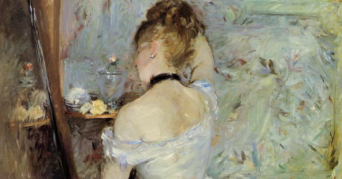 A c. 1875 oil on canvas painting, Lady at her Toilet, by Berthe Morisot (1841-95), the French impressionist painter. The pale and pastel-like colours of the palette are typical of Morisot's style. This work was shown at the Fifth Impressionist Exhibition in Paris in 1880. (Art Institute of Chicago)