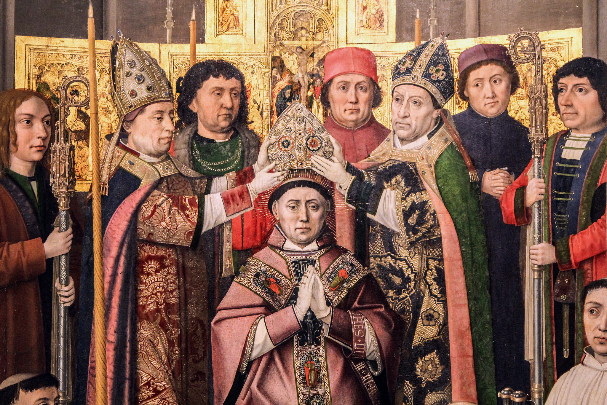 Saint Augustine Ordained a Bishop, detail from a Netherlandish triptych painted c. 1490.