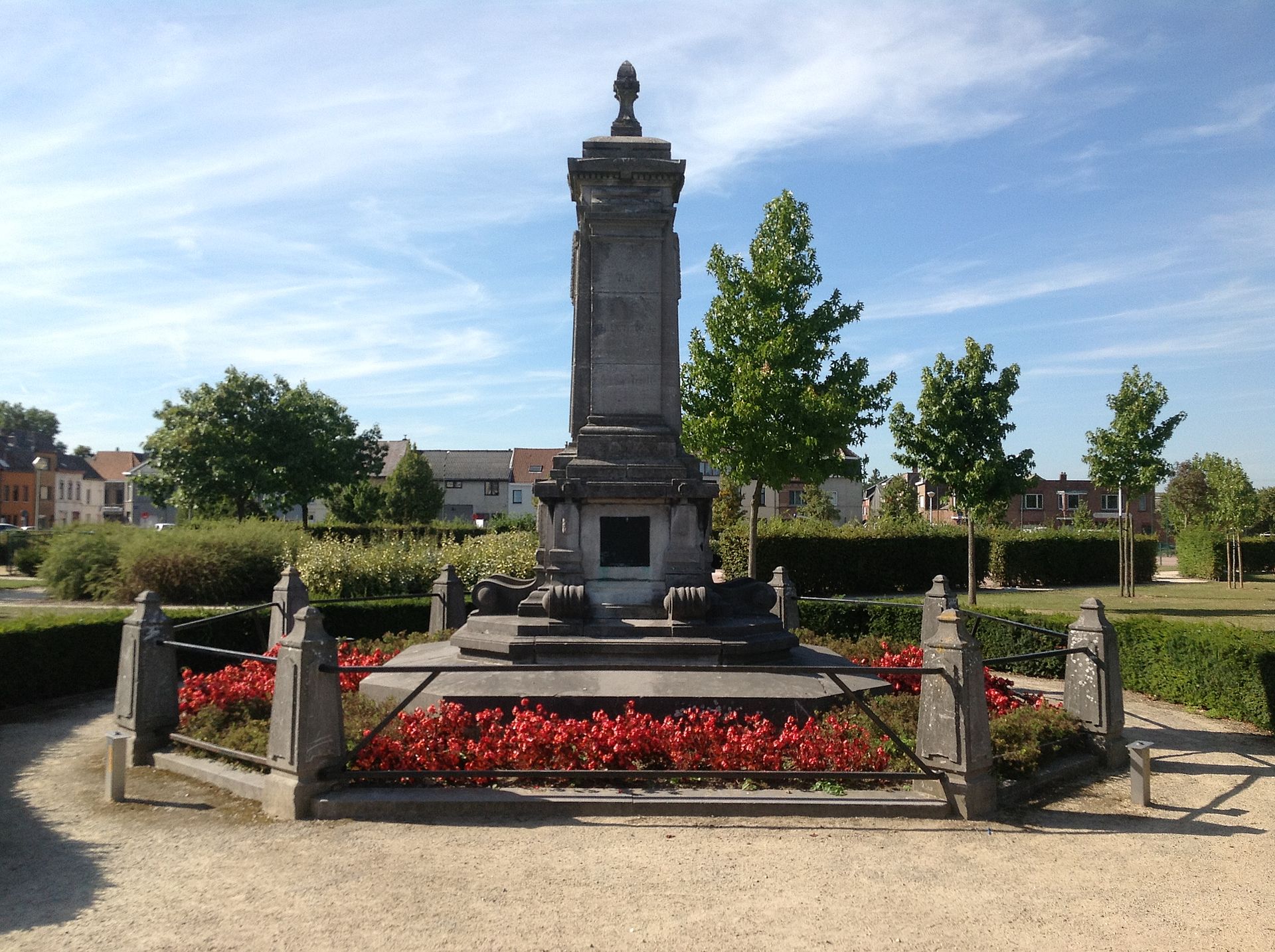 Memorial to the Reformer, linguist, and scholar William Tyndale (c. 1494-1536) in the Vilvoorde public gardens, Belgium.