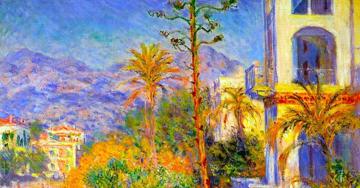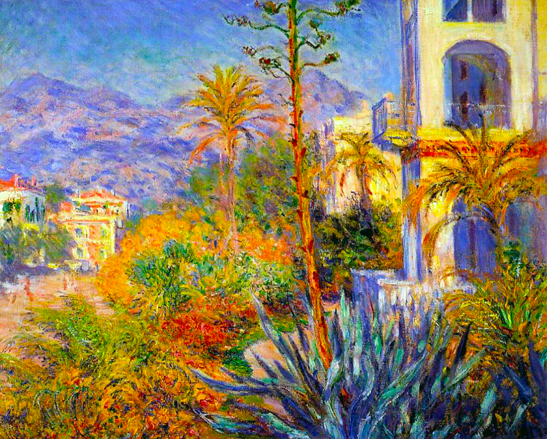 An 1884 oil on canvas, Villas in Bordighera, by Claude Monet (1840-1926), the French impressionist painter. The artist visited the south of France and Liguria in Italy in 1883-4 and was fascinated by the Mediterranean light and colours. At Bordighera alone, he produced 50 paintings and used a noticeably brighter palette than previously in his career. (Santa Barbara Museum of Art, California)