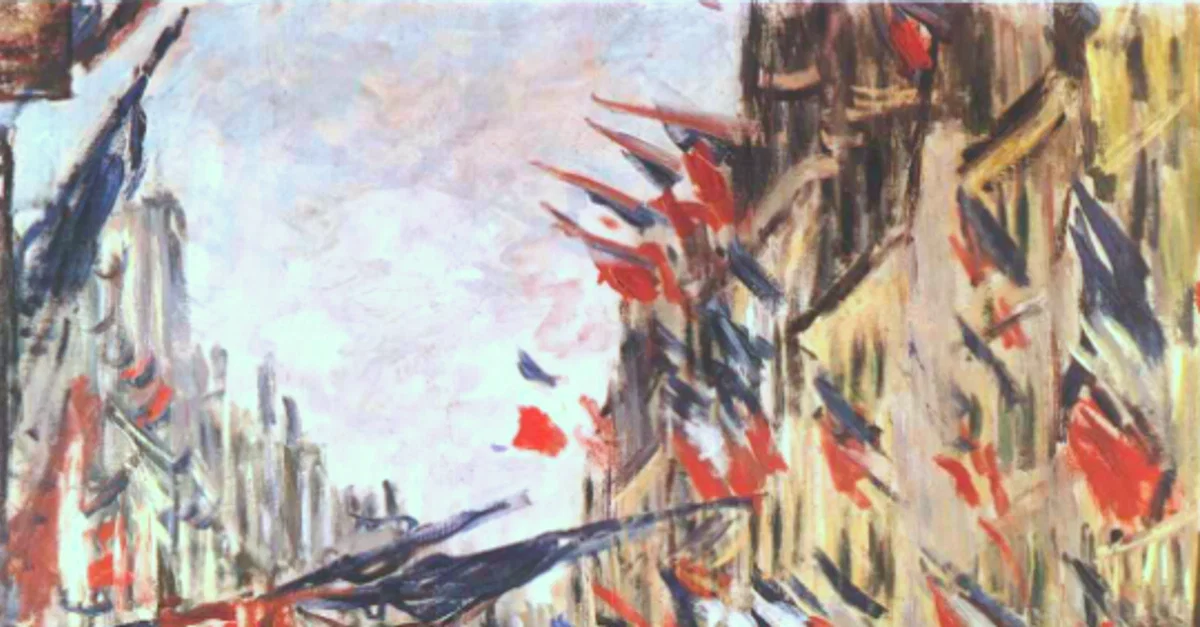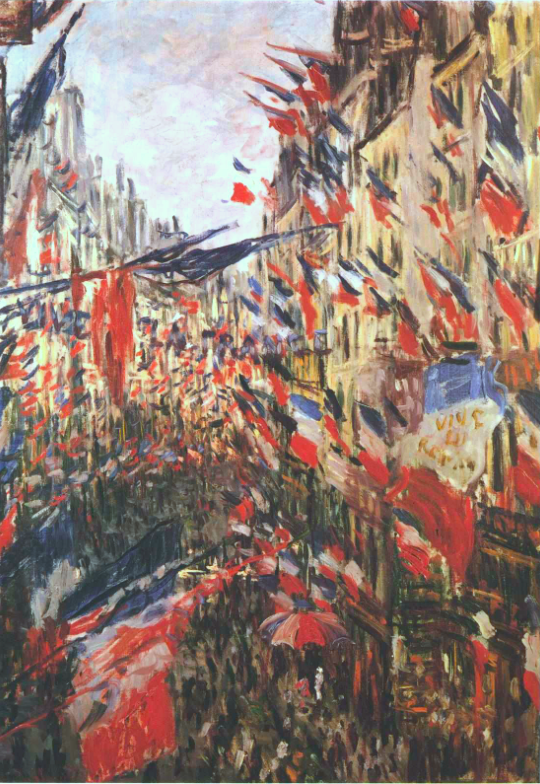 An 1878 oil on canvas, The Rue Saint-Denis, Celebration of June 30, 1878, by Claude Monet (1840-1926), the French impressionist painter. The scene captures the public holiday and celebrations of the Universal Exhibition in Paris that year. (Musée des Beaux-Arts, Rouen, France)