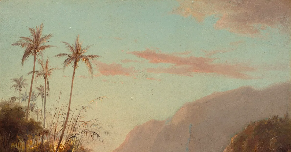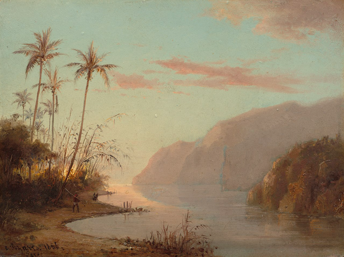 An 1867 oil on canvas, A Cove at St. Thomas, by Camille Pissarro (1830-1903), the Danish-French impressionist painter. The artist was born on the island of St. Thomas in the Caribbean. (National Gallery of Art, Washington D.C.)