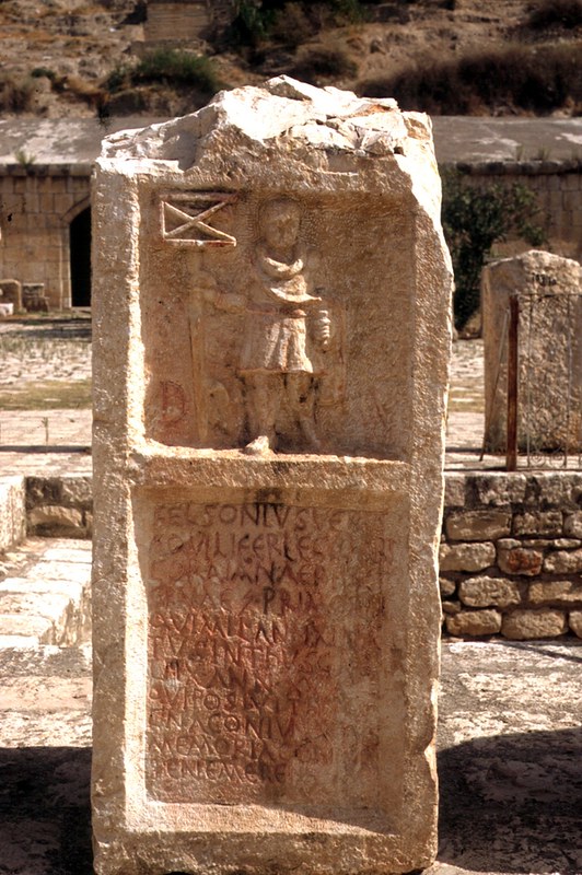 Tombstone of Felsonius Verus, the aquilifer of Legio II Parthica. Located at Apamea, Syria.