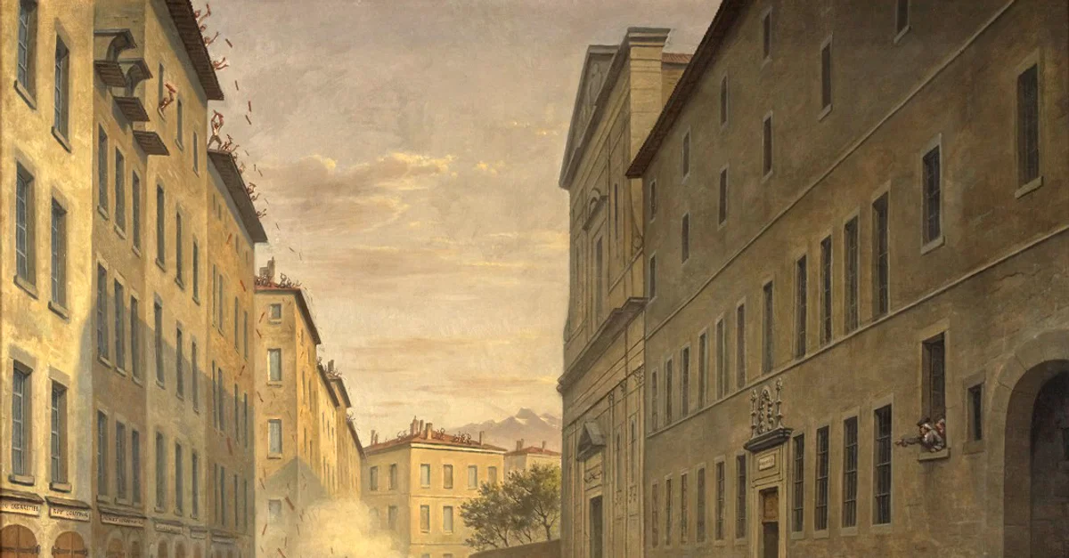 Day of the Tiles on June 7, 1788 in Grenoble, oil on canvas painting by Alexandre Debelle, 1889.
