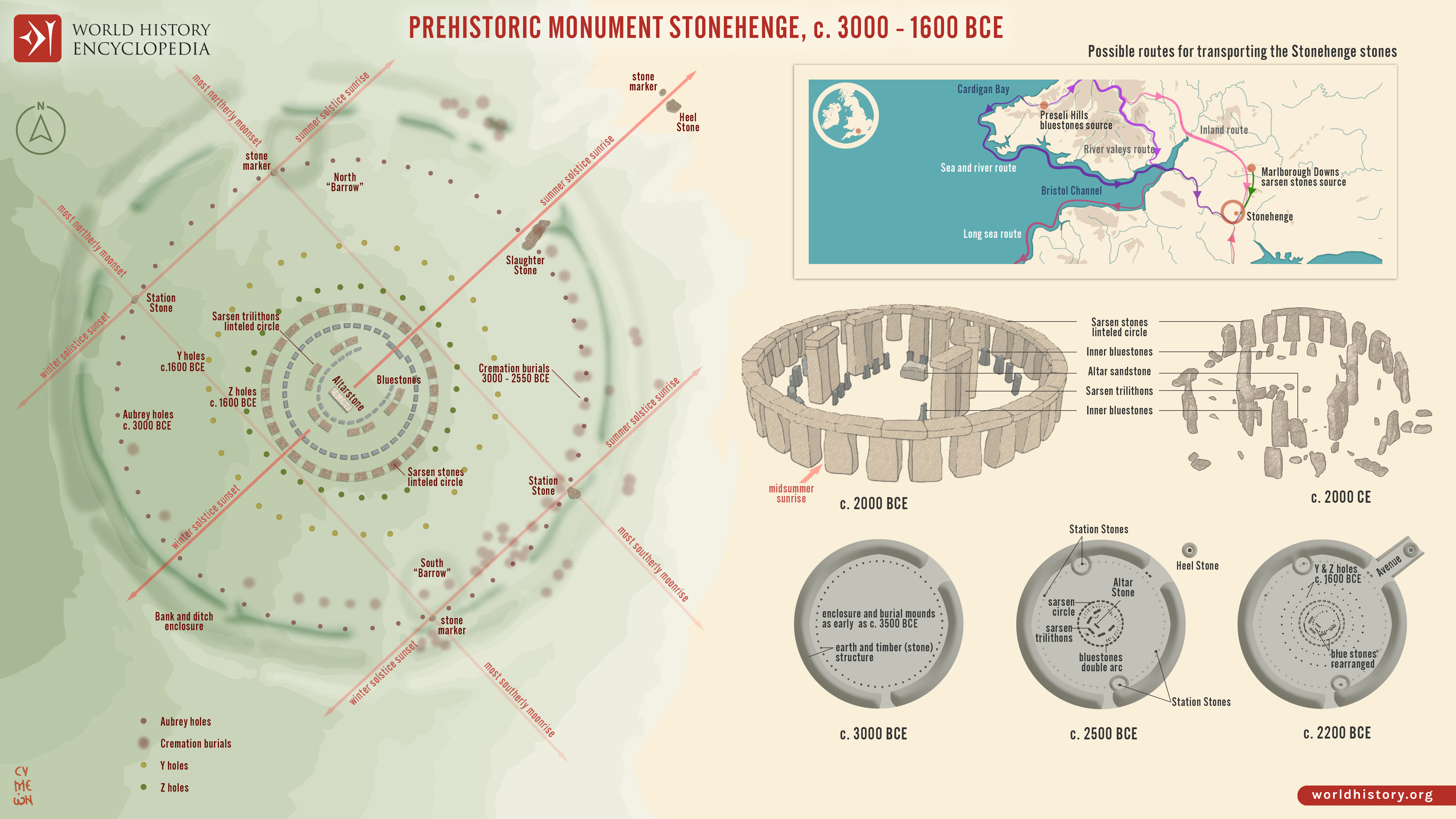 Netchev, Simeon. "Prehistoric Monument Stonehenge, c. 3000-1600 BCE: Circles of Time: From Earthworks to Megaliths at Stonehenge." World History Encyclopedia, 24 Apr 2022, https://www.worldhistory.org/image/15691/prehistoric-monument-stonehenge-c-3000-1600-bce/.