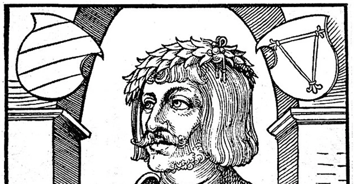 Woodcut print of Ulrich von Hutten (l. 1488-1523) from c. 1522 depicting the poet-knight who encouraged the Knights' Revolt of 1522-1523.