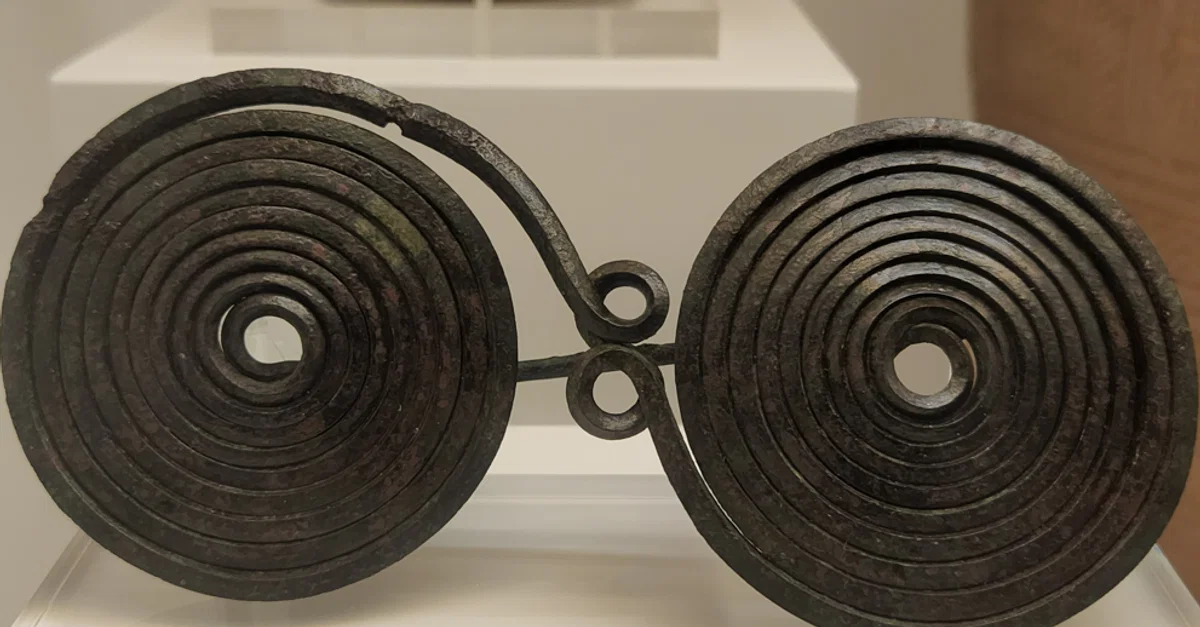 This fibula (spiral brooch) is made from a single piece of coiled bronze and would have been used to fasten two halves of a garment at the shoulder. Perhaps from Macedonia. 10th-8th century BCE. (Hellenic Museum, Melbourne, Victoria).