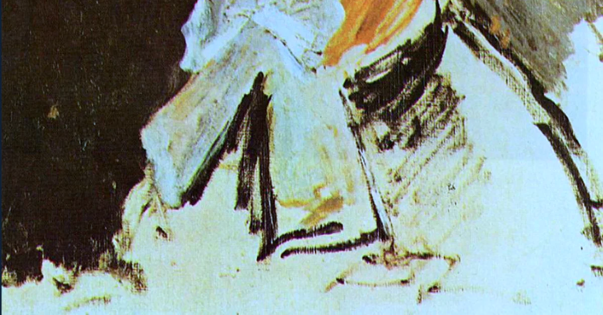 An 1860 oil on canvas, Portrait of Renoir's Mother, by Pierre-Auguste Renoir (1841-1919) the French impressionist painter. An unfinished work showing the artist's mother Marguerite when she was 53 years old. It is an unusually honest portrait compared to later works. (Private Collection)