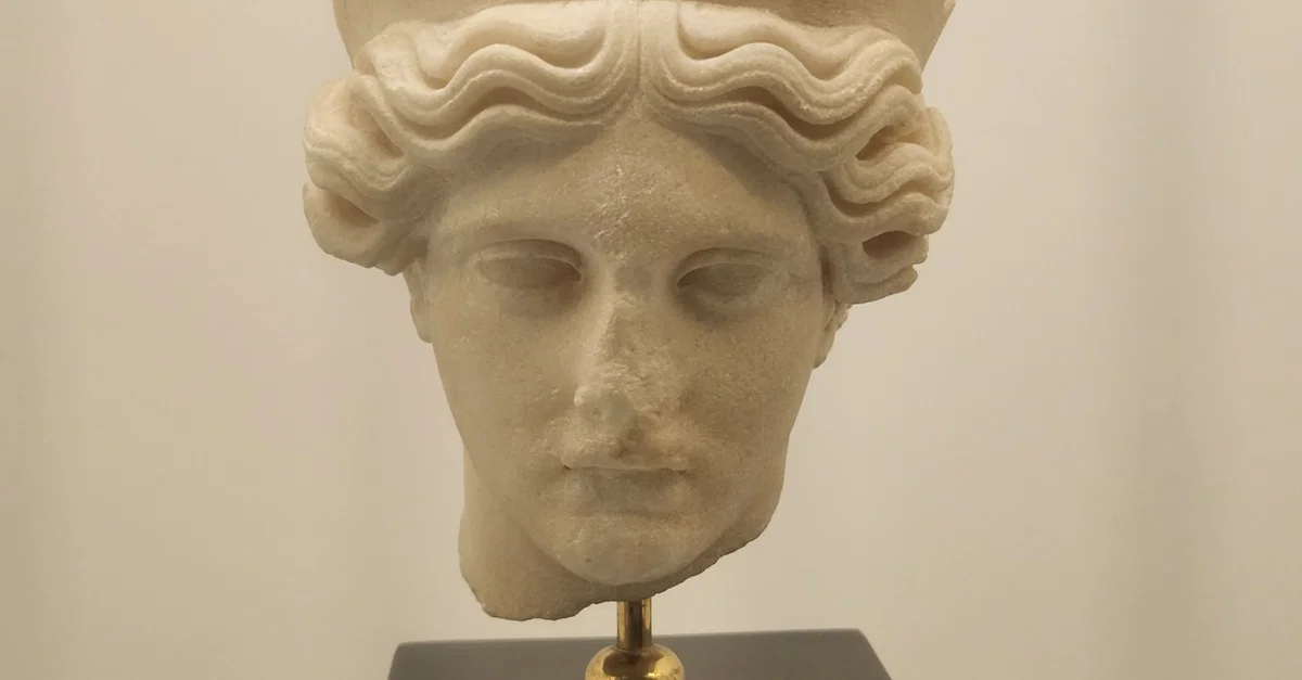 Roman copy of the head of an Athenian cult statue probably representing a peplos-clad goddess, of the years around c. 430 BCE.