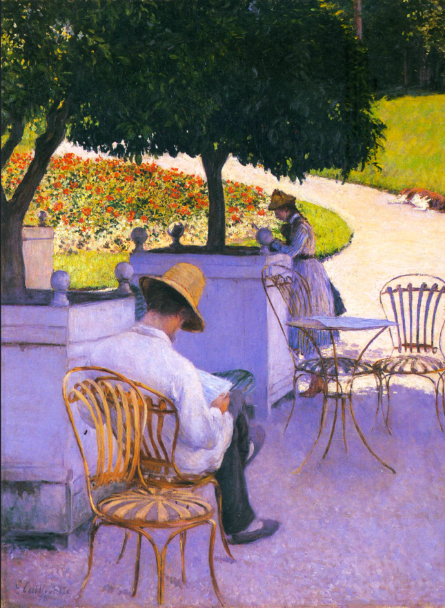 An 1878 oil on canvas, The Orange Trees (aka The Artist's Brother in His Garden) by Gustave Caillebotte (1848-96) the French impressionist painter. The subject here is Martial, the artist's younger brother with whom he later shared a house. This scene is at the Caillebotte family home at Yerres. (Museum of Fine Arts, Houston, USA)