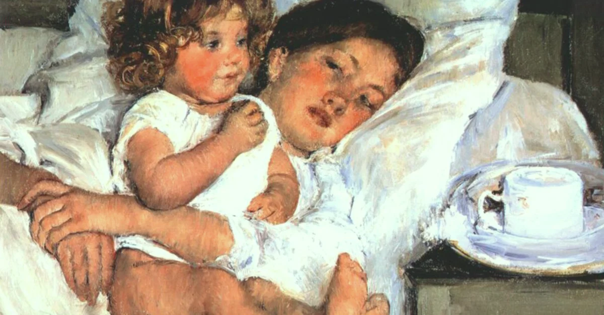 An 1897 oil on canvas, Breakfast in Bed, by Mary Cassatt (1844-1926), the American impressionist painter. (Huntingdon Library and Art Gallery, San Marino)