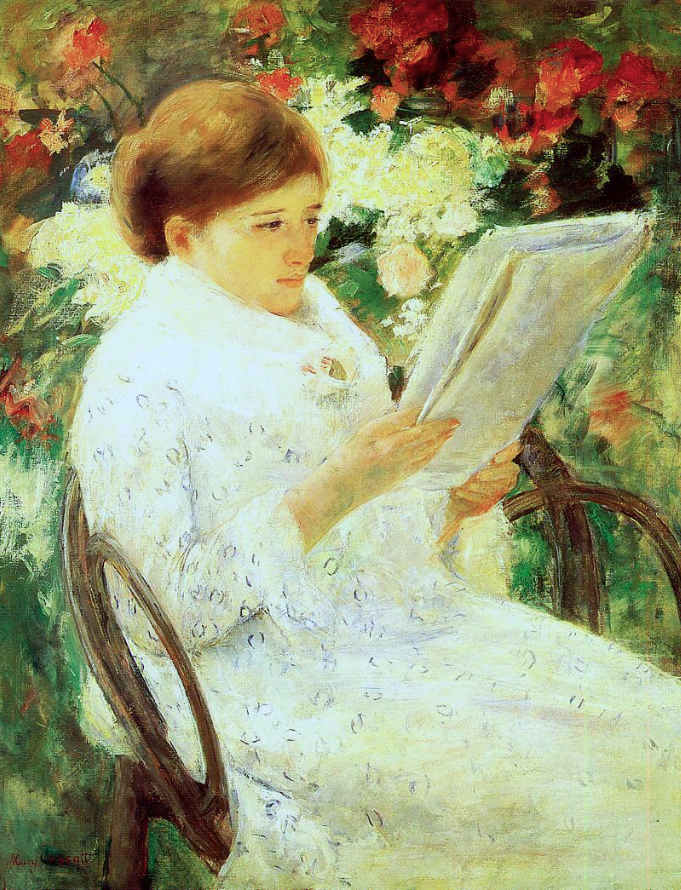 An 1878-9 oil on canvas, Woman Reading in the Garden, by Mary Cassatt (1844-1926), the American impressionist painter. (Art Institute of Chicago, USA)
