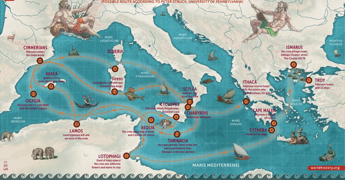 Netchev, S. (2025, November 07). Map of Odysseus’ 10-year Journey Home. World History Encyclopedia. https://www.worldhistory.org/image/15906/map-of-odysseus-10-year-journey-home/