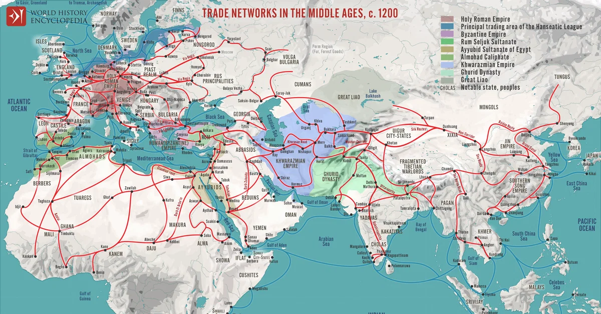 Netchev, S. (2022, May 24). Map of the Trade Networks in the Middle Ages, c. 1200. World History Encyclopedia. https://www.worldhistory.org/image/15923/map-of-the-trade-networks-in-the-middle-ages-c-120/