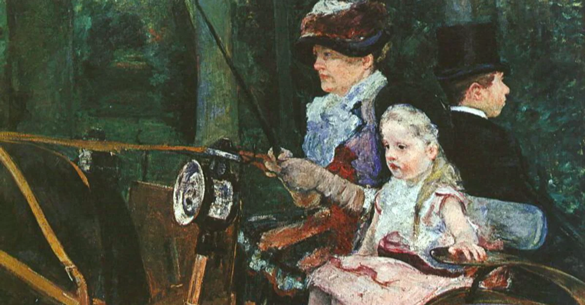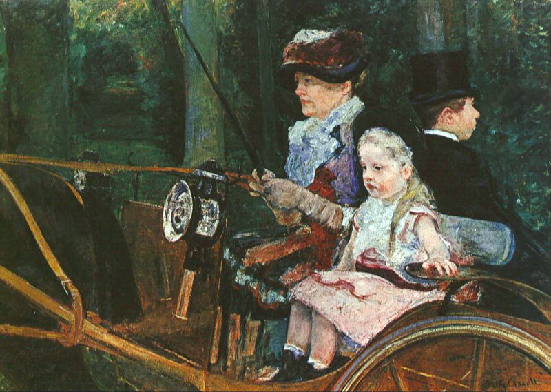 An 1881 oil on canvas, A Woman and a Girl Driving, by Mary Cassatt (1844-1926), the American impressionist painter. Cassatt here captures an outing to the Bois de Boulogne, then on the outskirts of Paris. (Philadelphia Museum of Art, USA)