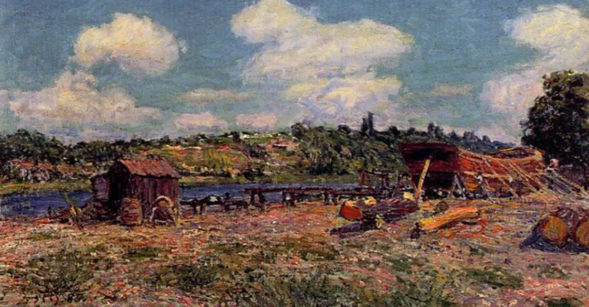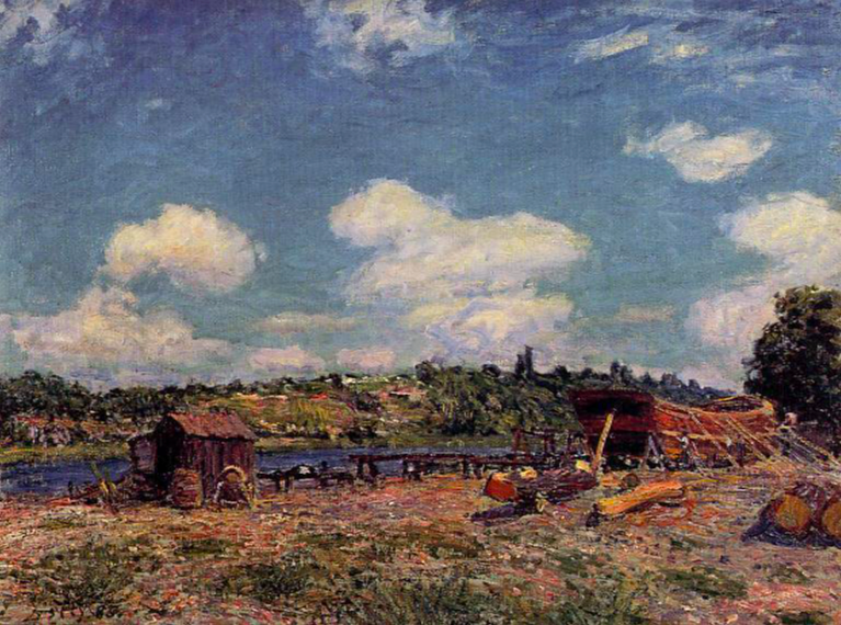 An 1885 oil on canvas, Boatyard at Saint-Mammés, by Alfred Sisley (1839-1899), the Franco-British impressionist painter. (Columbus Museum of Art, USA)