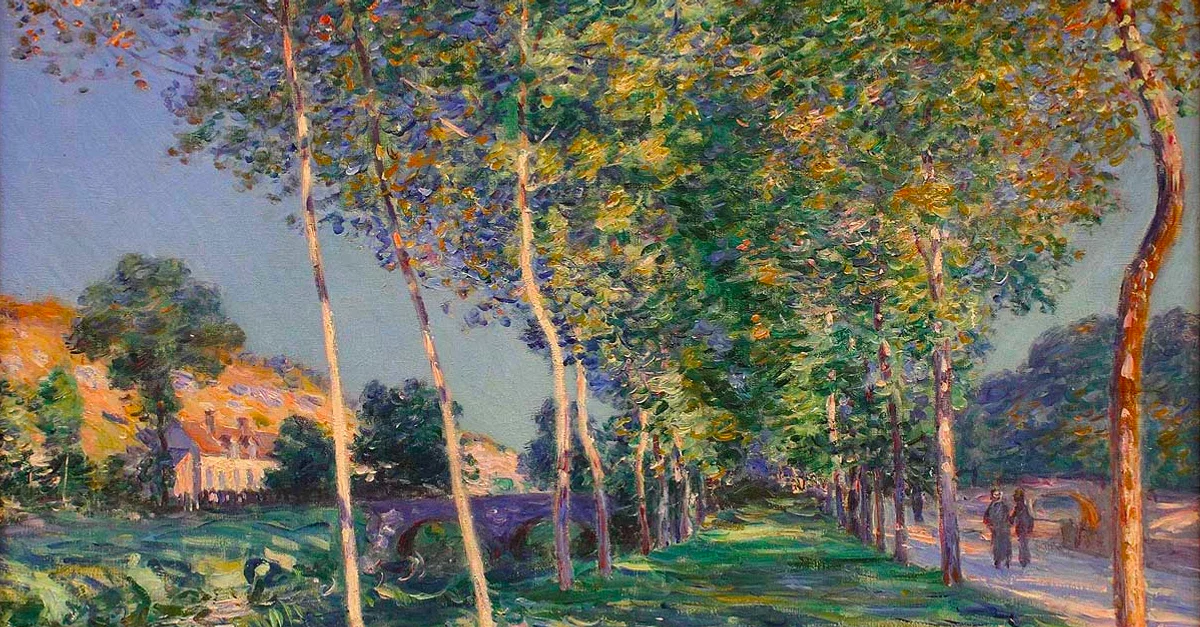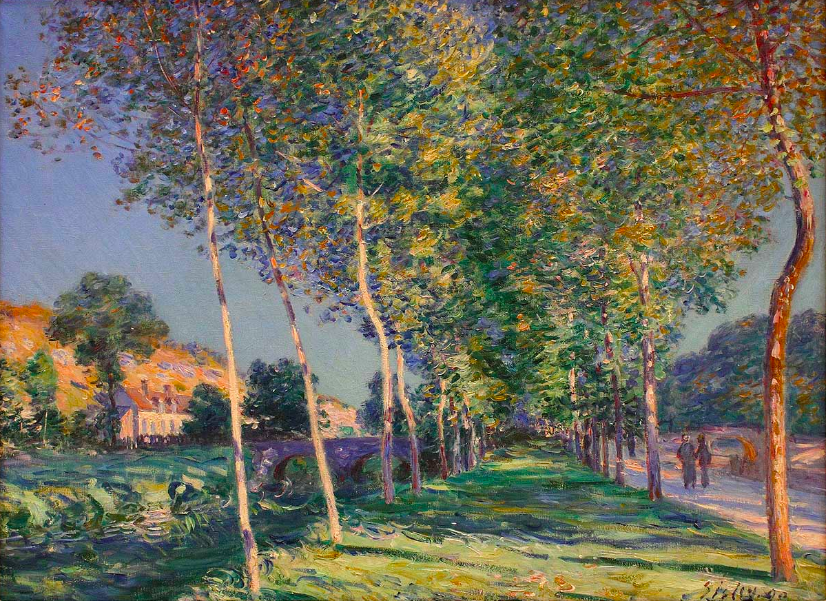 An 1890 oil on canvas, The Line of Poplars at Moret-sur-Loing, by Alfred Sisley (1839-1899), the Franco-British impressionist painter. (Musée d'Orsay, Paris)