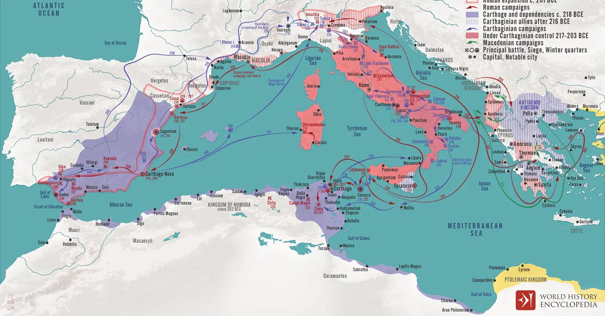 Netchev, S. (2022, May 31). The Second Punic War (218 - 201 BCE). World History Encyclopedia. https://www.worldhistory.org/image/15973/the-second-punic-war-218---201-bce/