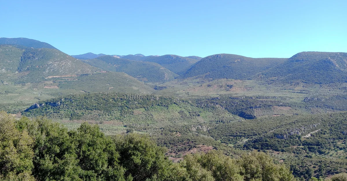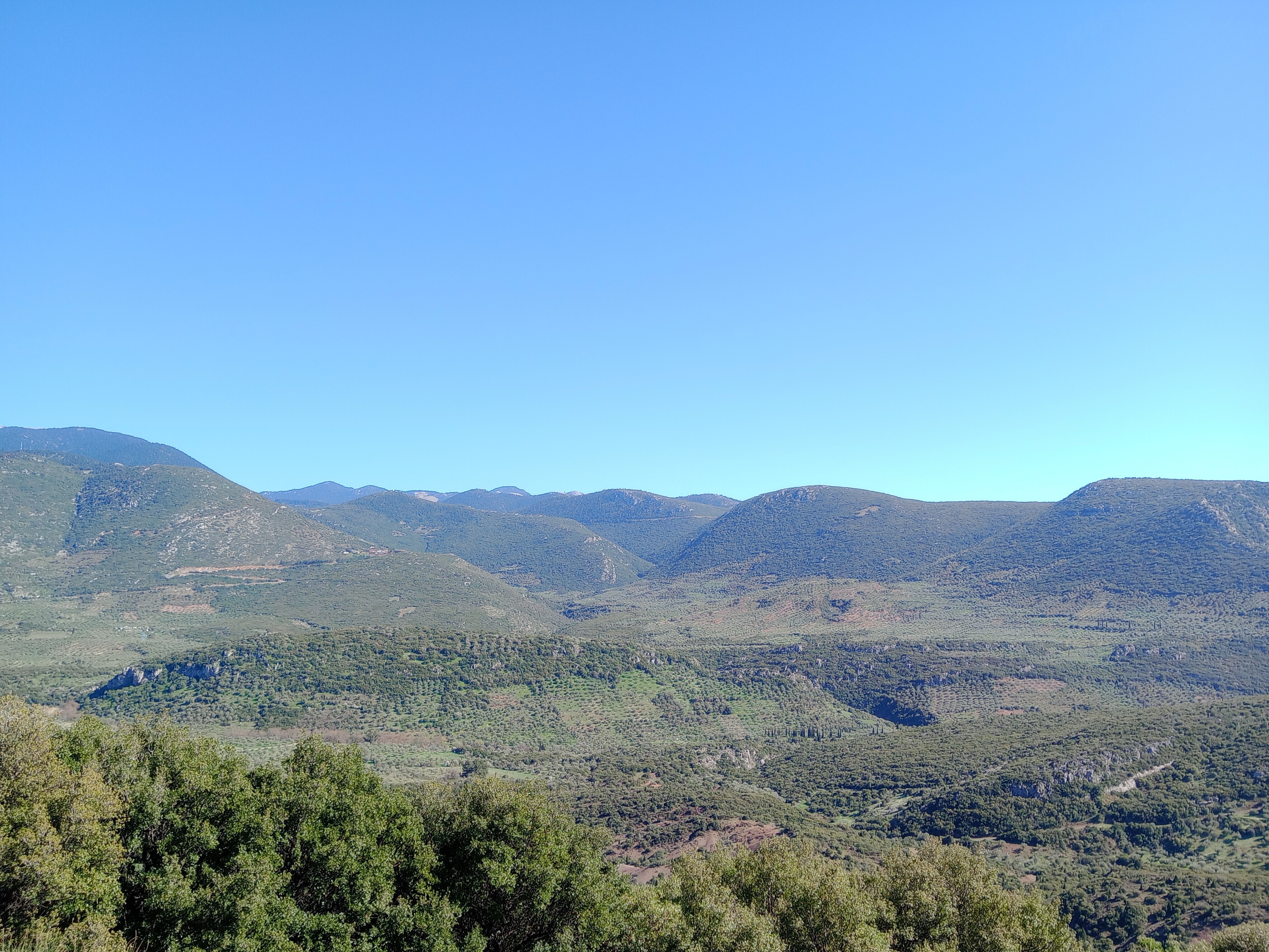 The landscape of Boeotia, Greece during the spring from the monastery of Hosios Loukas near the town of Distomo.