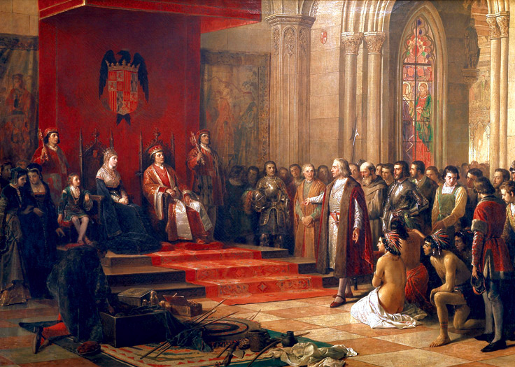 An 1874 painting by Ricardo Balaca showing the arrival back in Spain of Christopher Columbus (1451-1506 CE) in 1493 after his voyage to the New World.