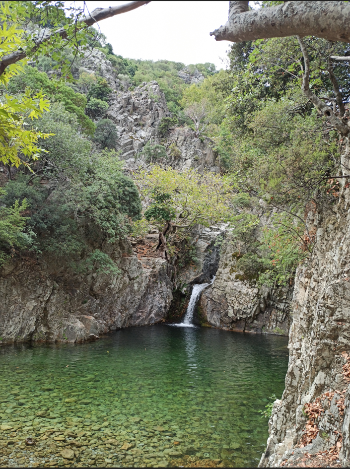A beautiful pond emerges from the waterfall deriving from Mt. Saos, Samothrace.