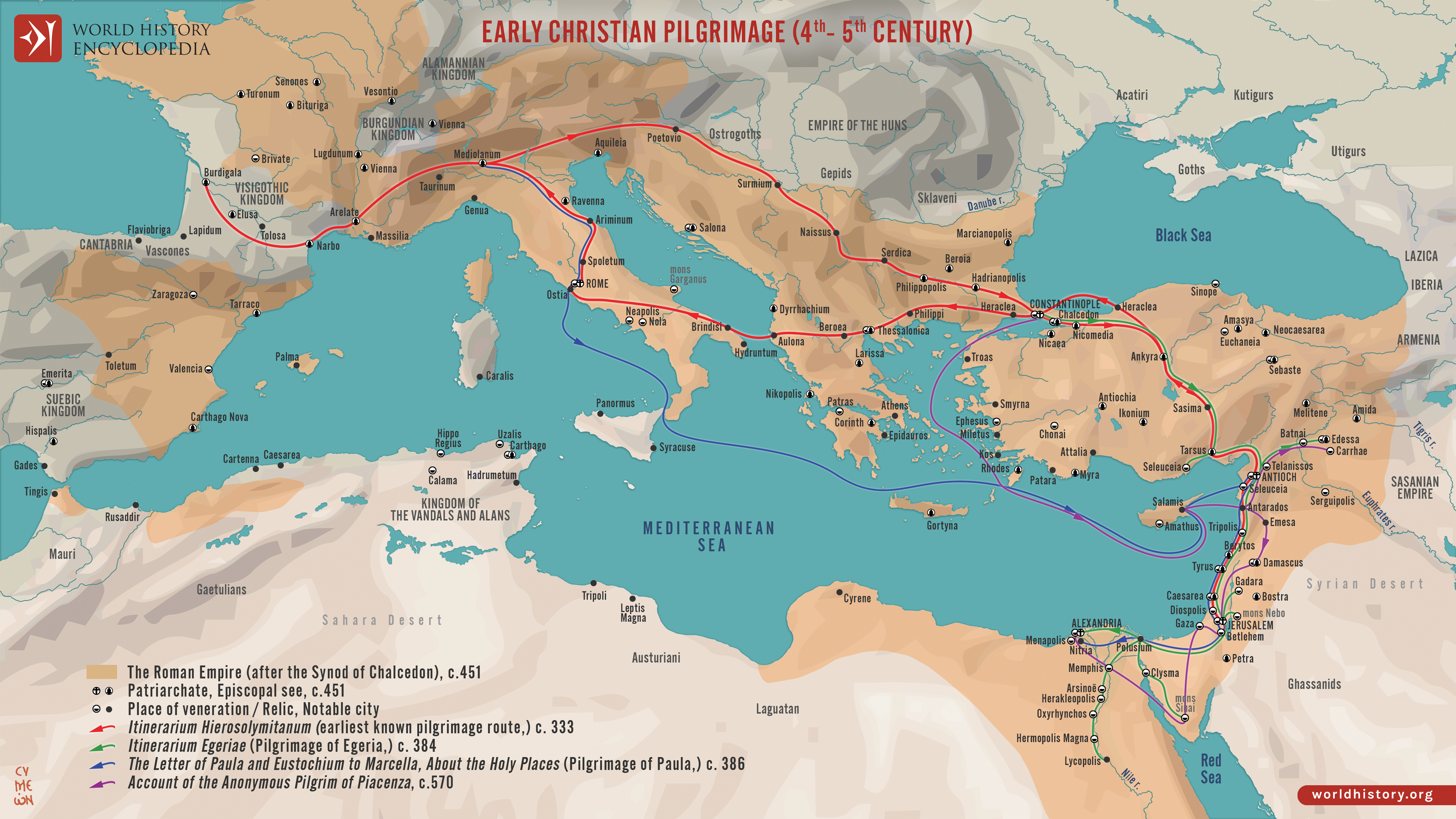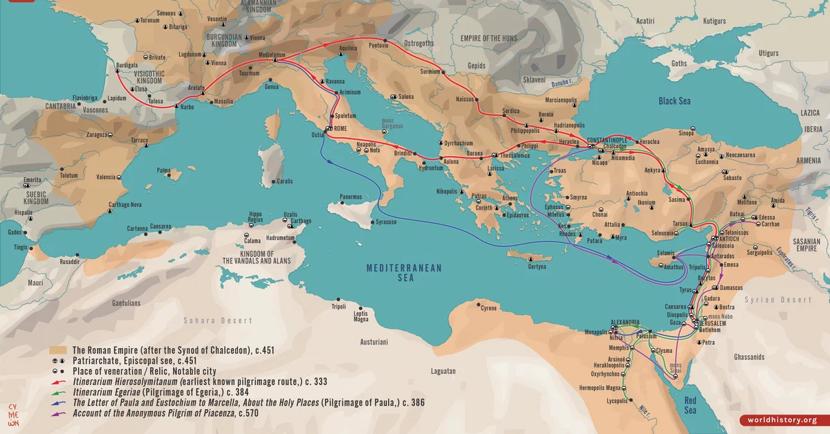 Netchev, S. (2022, June 15). Map of the Early Christian Pilgrimage (4th-5th Century). World History Encyclopedia. https://www.worldhistory.org/image/16025/map-of-the-early-christian-pilgrimage-4th-5th-cent/