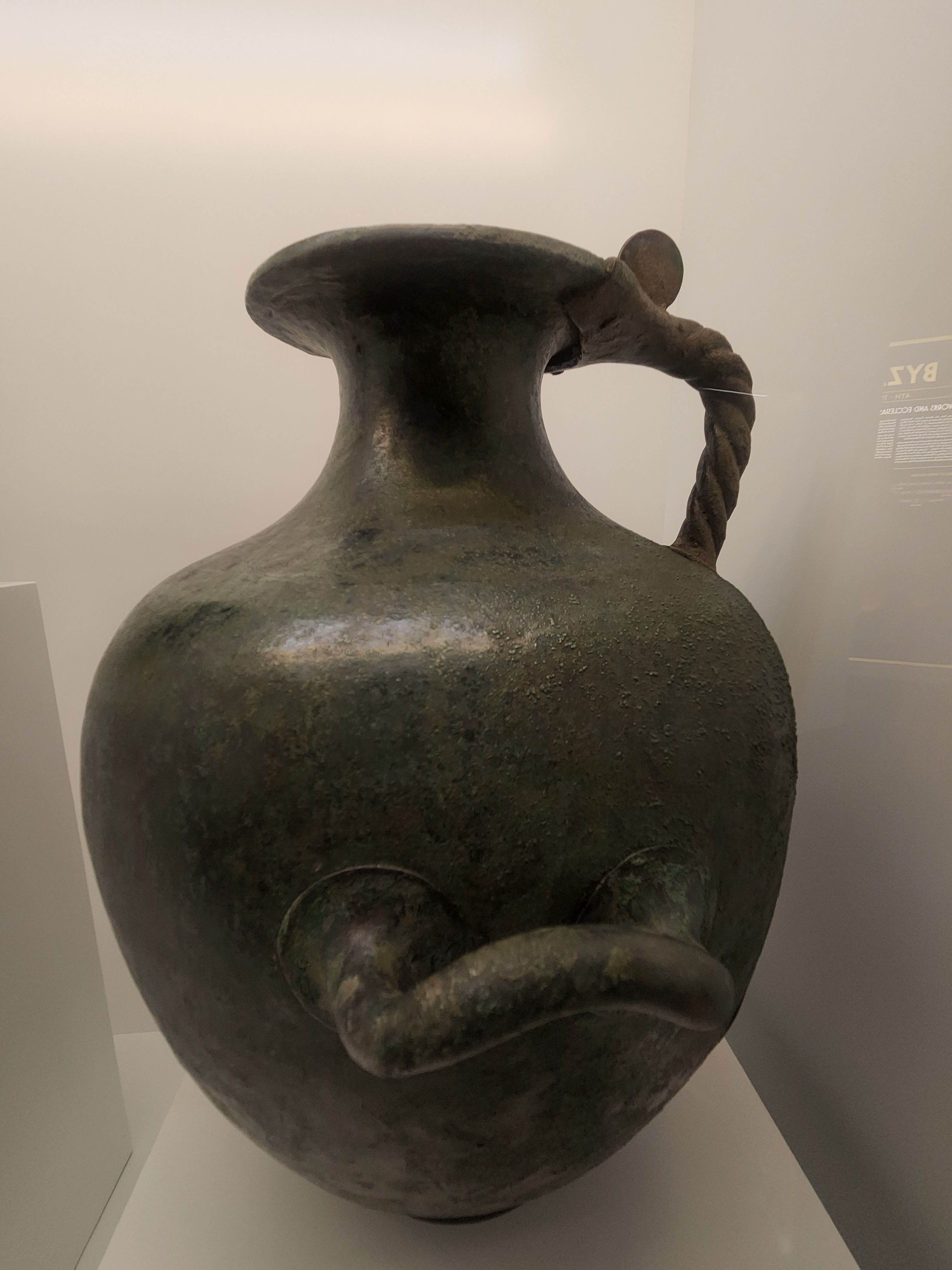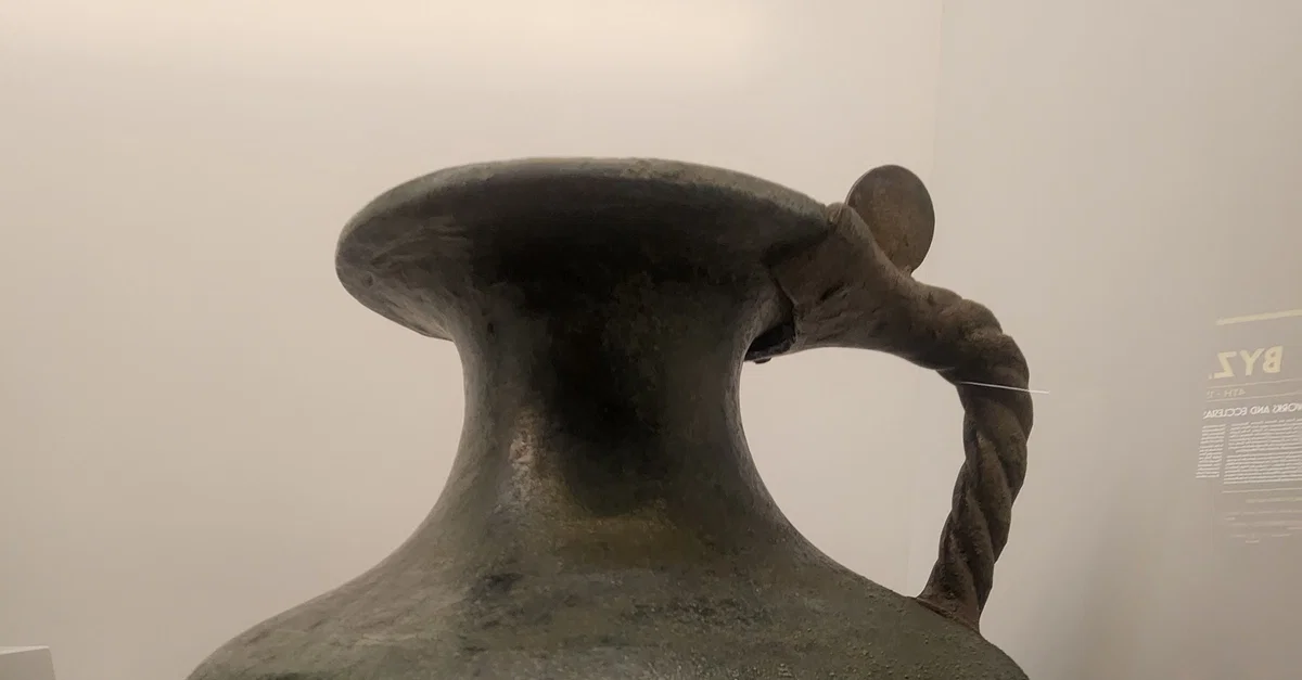 The hydria, as its name indicates, was used almost exclusively for carrying water (Greek hydor), essential for everyday cleansing, ritual purifications and libations. 4th-century BCE. Made from bronze. (Hellenic Museum, Melbourne, Victoria)