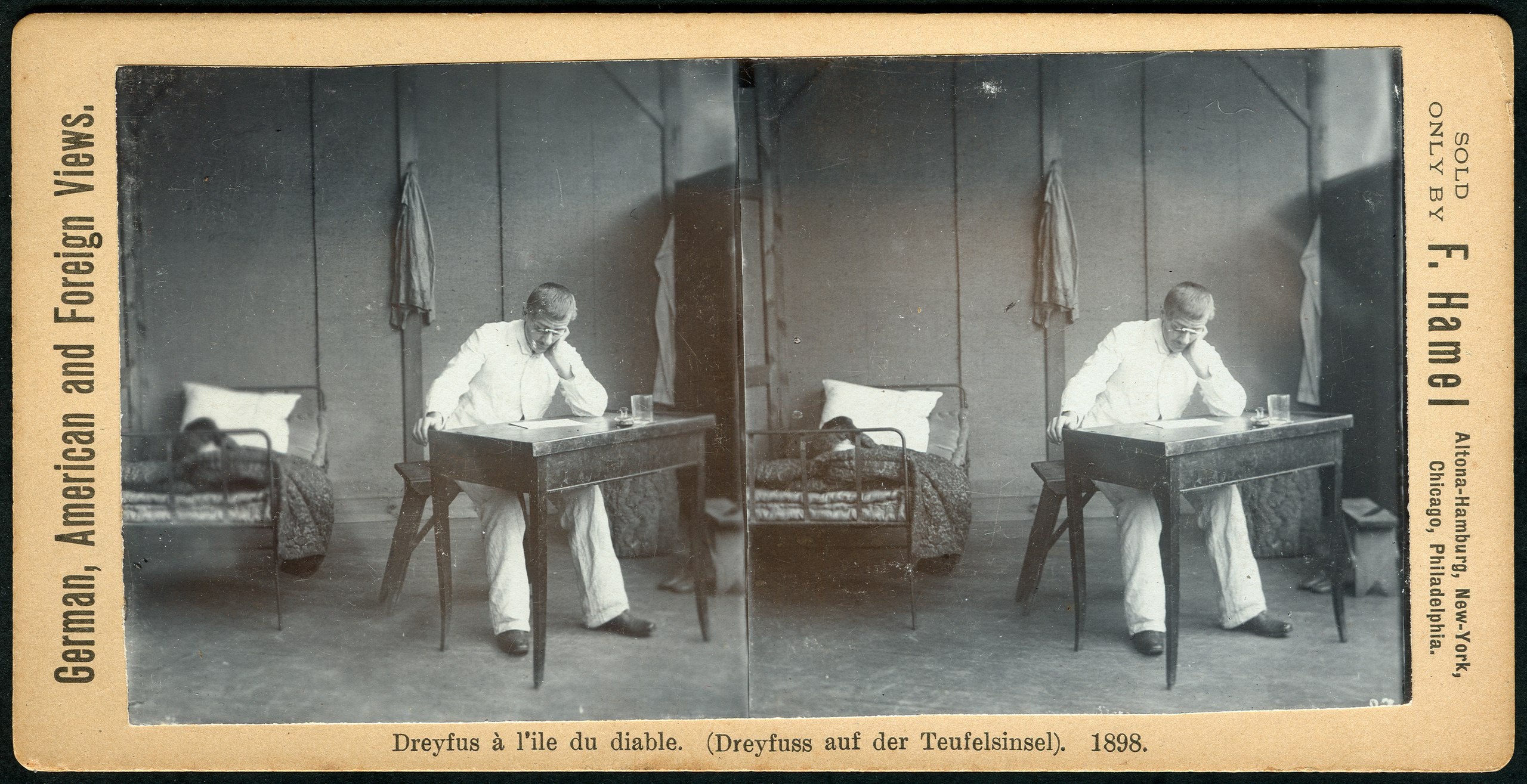 Alfred Dreyfus on Devil's Island in 1898, stereoscopy by F. Hamel, Altona-Hamburg.