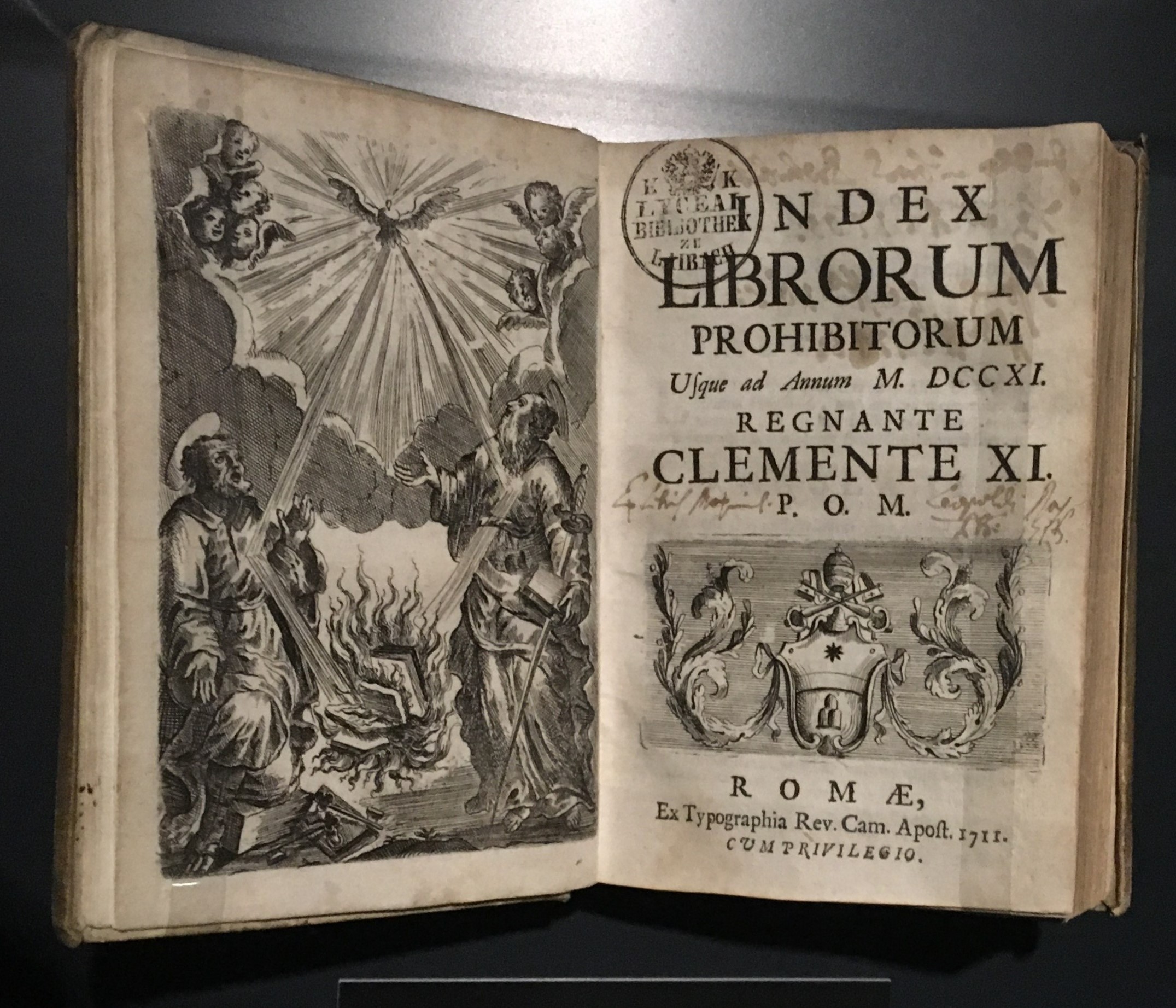 Title page of the Index of Prohibited Books (Index Librorum Prohibitorum), published in Rome, 1711.
