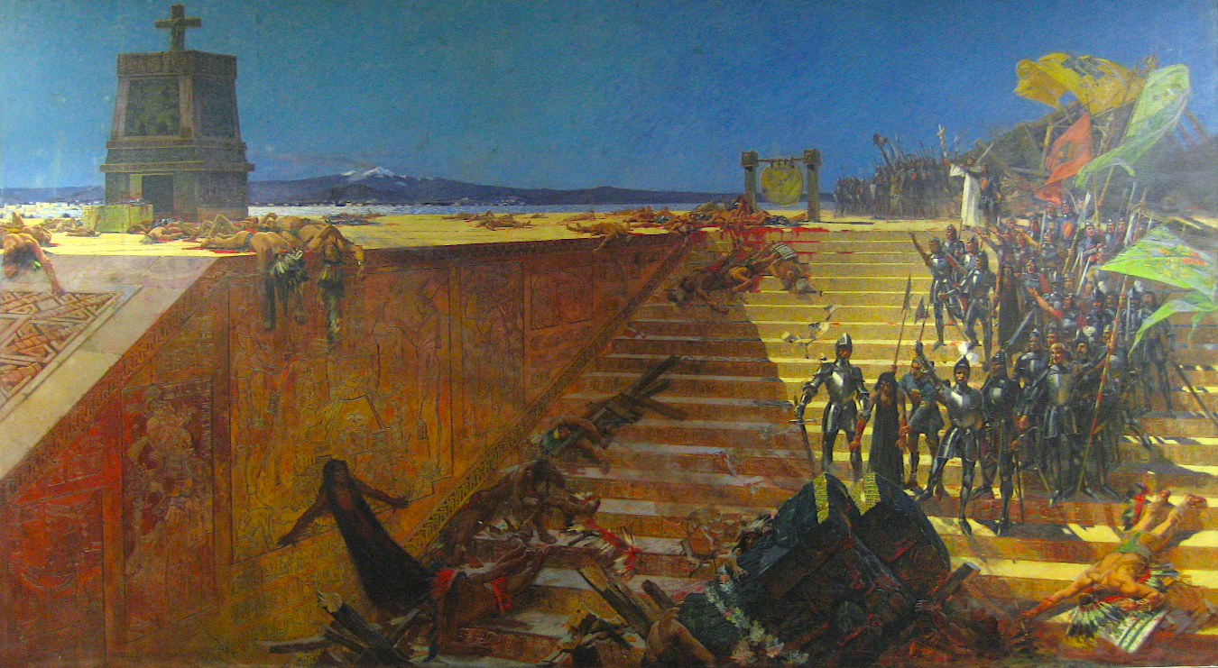 An 1899 painting by William de Leftwich Dodge (1867–1935) depicting the last stand of the Aztecs during the siege of Tenochtitlan by Hernán Cortés in 1521. (Howard Tilton Library, Tulane University, New Orleans)