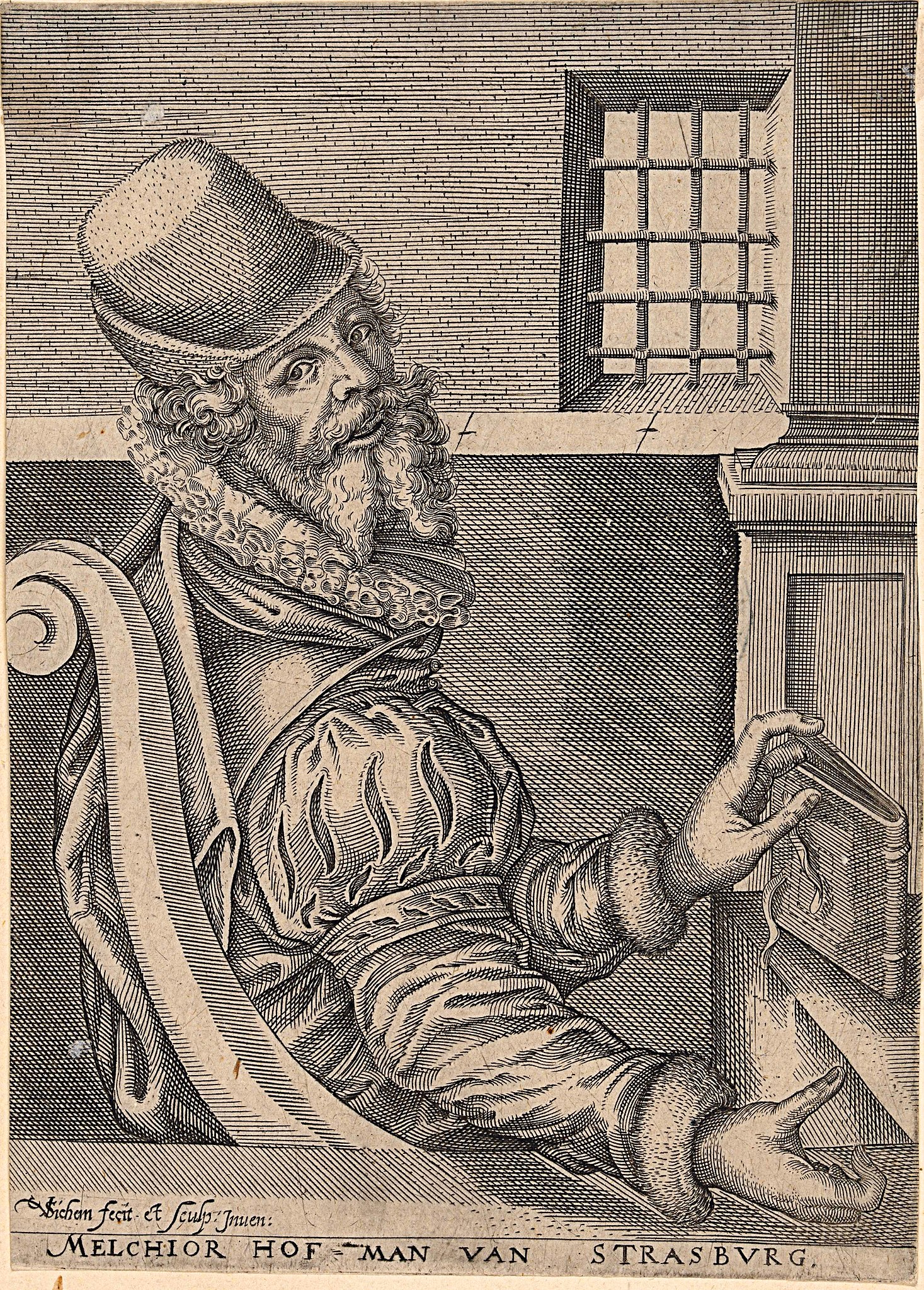 Melchior Hoffman (l. c. 1495 to c. 1543), portrait by Christoffel van Sichem, Amsterdam, 1600.