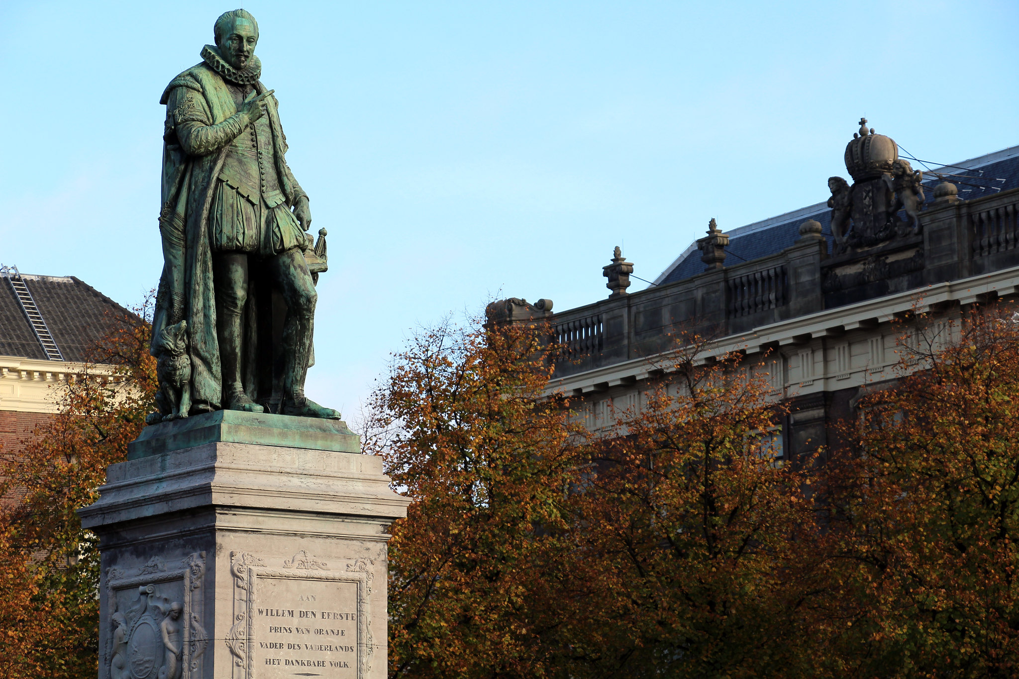 Statute of William the Silent (l. 1533-1584, also known as William of Orange), made by Flemish sculptor Louis Royer, unveiled on 5 June 1848.