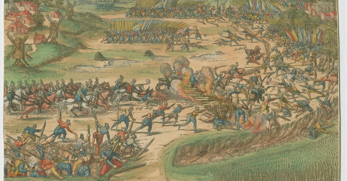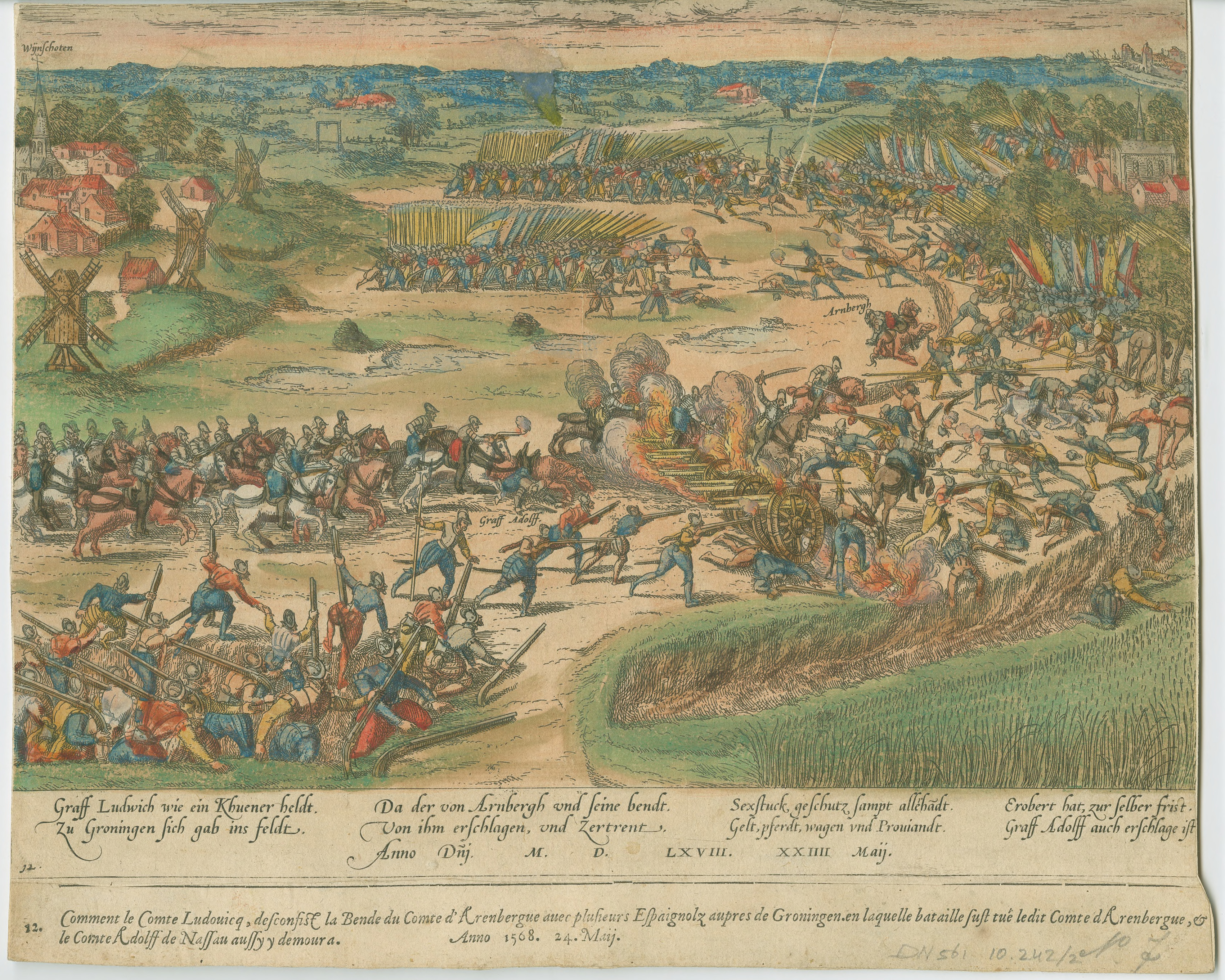 Battle of Heiligerlee, 1568, drawing by F. Hogenberg, late 16th century.