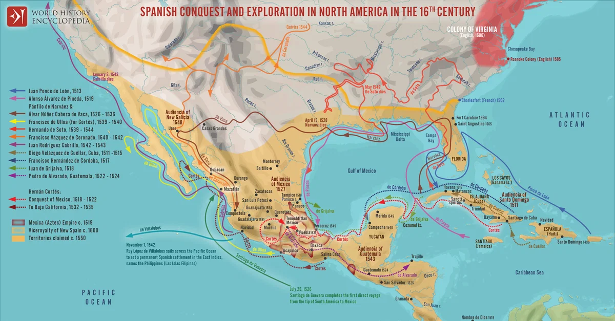 Netchev, S. (2022, August 02). Map of Spanish Conquest & Exploration in North America. World History Encyclopedia. https://www.worldhistory.org/image/16218/map-of-spanish-conquest--exploration-in-north-amer/